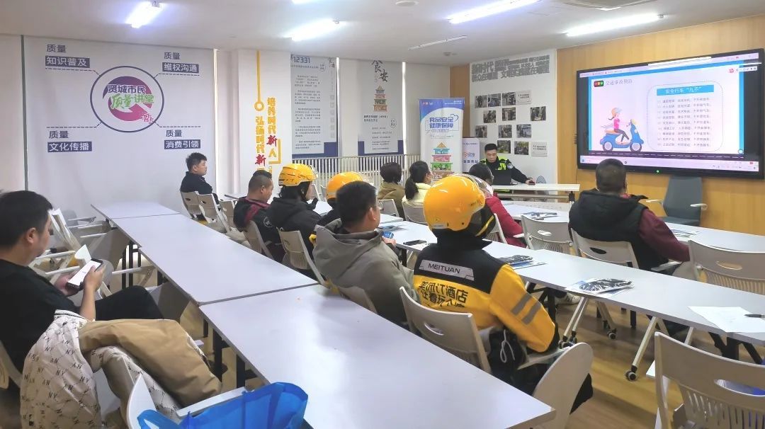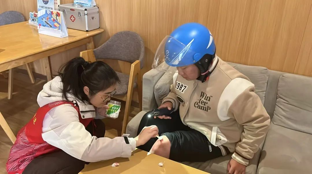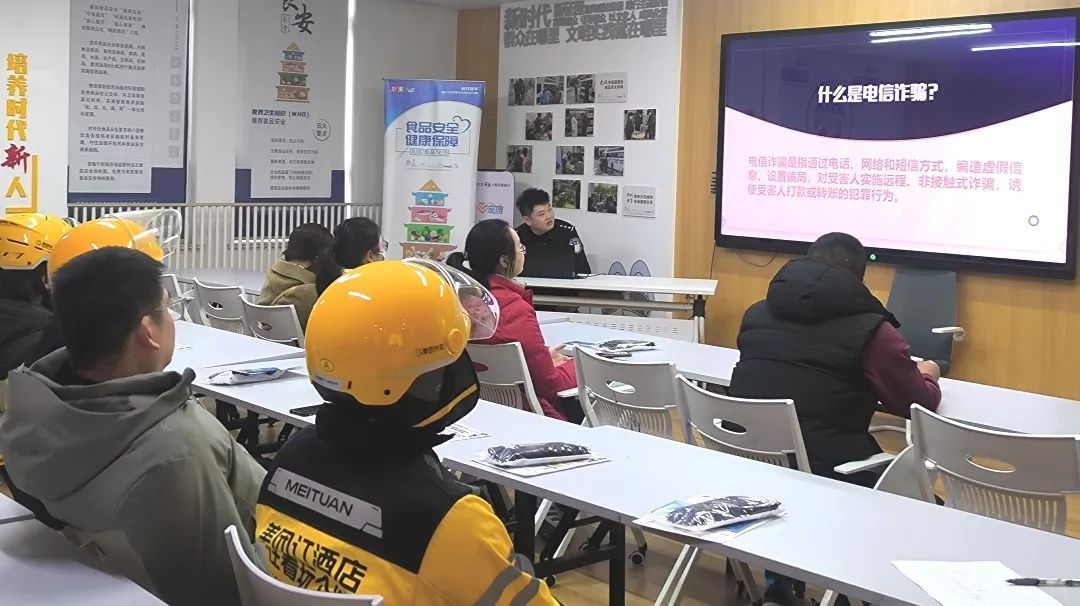 为了让新就业群体在冬日里感受到温暖,金海街道推出了一系列关怀行动,从 开展暖心活动到 组织安全培训,以高效的实际行动诠释着对新兴领域就业群体的尊重与关爱。 寒风中带着冬日的凛冽,志愿者搭建起临时的帐篷,准备好各类物资,热情地迎接每一位到来的快递员,向他们传递社区的温暖与关怀。 12月6日、7日,金海街道南、北部商圈党支部与“拾光”志愿者服务队携手同行,共同开展了 四场暖心活动,为奔波在大街小巷的快递员小哥送去冬日的温暖。同时,通过发放联“新”卡,向新就业群体宣传金海街道各类服务项目。本次宣传面向整个金海街道南北片区,覆盖南部商圈400余人、北部商圈300余人,四场活动下来服务并宣传近800人次。 党支部与志愿者们精心准备了手套、雨衣等实用物资,一一递到快递员小哥们的手中,还为他们送上了热气腾腾的包子、酒酿汤圆、茶叶蛋以及蛋糕等充饥的食物,让他们在忙碌的工作间隙能够稍作休息、暖身提神。 12月6日,金海街道在党群服务中心开展新就业群体安全培训,来自美团、圆通、中通等快递外卖平台的新就业群体参与其中。本次培训旨在增强新就业群体的交通安全意识与反诈骗意识,提升他们的自我保护能力。 活动开始,大家一起观看了警示教育片。金海派出所警官围绕电瓶车安全驾驶,结合实际案例,深入浅出地讲解了交通事故预防、安全驾驶技巧、交通标志标线的识别,紧急情况下的应对措施等内容。针对外卖小哥送餐途中常见的超速行驶、闯红灯、逆向行驶等违法行为,警官进行了重点剖析,强调了其背后的安全隐患及可能面临的法律后果。 现场开展了反诈骗宣传讲座,授课警官通过分析近期高发的电信网络诈骗案例,详细介绍了诈骗分子的惯用手段、诈骗过程及防范技巧,如何识别诈骗电话、短信,如何保护个人隐私信息,遇到诈骗时如何快速报警等。此外,通过问答互动、情景模拟等多样化的教学方式,极大地激发了学员的学习兴趣和参与度,使得反诈宣传更加深入人心。 12月5日上午,刚下过雨的路面有些滑,穿着红色马甲从商铺走访回来的北部商圈党支部书记金兰和工作人员听到了一声巨响。顺着声音的方向看去,一位饿了么小哥正艰难地从地上爬起,电瓶车横躺在非机动车道上。见此情景,两人急忙跑过去帮忙。这时,一位美团小哥从不远处过来,北部商圈党支部书记连忙向美团小哥求助。美团小哥二话不说,靠边停车,将摔倒的电瓶车扶起并推到了安全位置。 “对面就是我们的户外职工之家,那边有医药箱,你可以去那边休息一下,膝盖上的伤需要消毒一下。”热心的美团小哥主动提出:“你上我的车,我带你过去,我正好刚送完一个单,时间不急。”美团小哥将饿了么小哥送到目的地后便急匆匆地走了。工作人员帮助饿了么小哥简单处理完伤口后,小哥说道:“今天很不幸,摔倒的时候很害怕。但今天也很幸运,遇到了你们,让我感觉很温暖。”