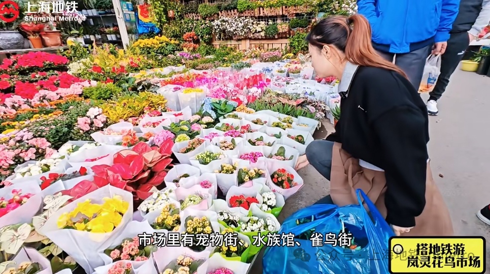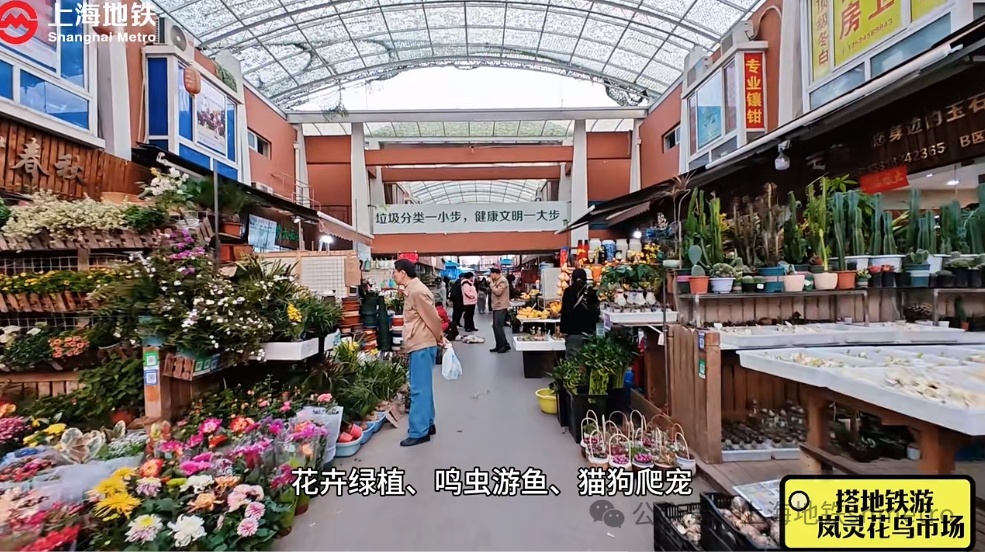 岚灵花鸟市场是目前上海最大的一家花鸟市场。地铁7号线新村路站1号口出站步行5分钟即可到达。市场里拥有花卉绿植,鸣虫游鱼,猫狗爬宠,古玩字画,8000多㎡,足足五六百个摊位。三条相通的短街和几条巷子,如果要好好逛一圈就得花上大半天。在这里,上至退休老爷子,下至托儿所小屁孩,全年龄都能在这儿收复找到属于自己的神奇宝贝。市场里有宠物街、水族馆、雀鸟街、昆虫街、花卉区、这里不像一座纯粹的商业广场,更多的让人感觉像是一个宝藏乐园。在钢筋水泥的城市中,就是需要这样的生活气息,花鸟市场是一座城市的自在烟火,是向往自然的小小幸运,也是悠然惬意的情怀。跟着视频,搭地铁去岚灵花鸟市场打卡吧。