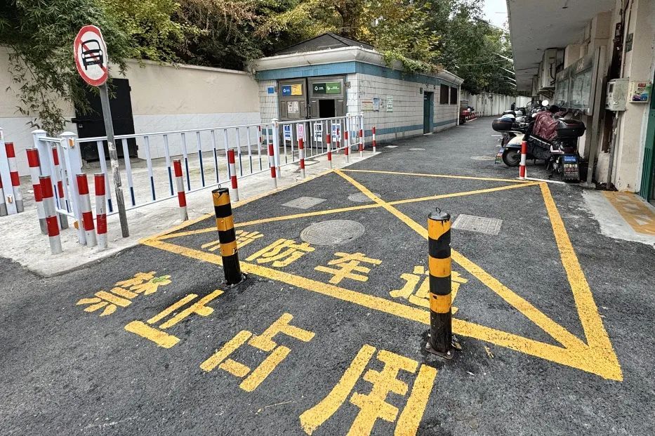 其次是规范停车区域。整治过程中,在道路主入口处设立消防通道禁停标识并重新安装可拆卸式禁停桩,确保消防通道畅通无阻,并且合理设置非机动车停车区域,方便居民停放车辆和骑行。