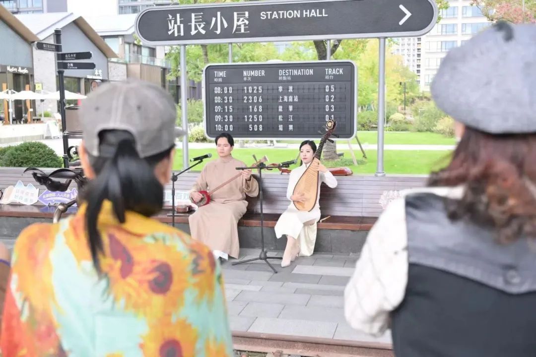 戏曲演绎不止在戏台之上,户外露天场地同样可以唱响戏韵。在西岸中環南浦火车站站长小屋及日晖绿地,市民在街角邂逅戏曲,近距离体验传统戏曲之美。“中国最美的声音”在徐汇滨江时尚优美的环境中显得更为细腻柔美、娓娓动听。街角绿地的戏曲舞台与秋日景色融为一体,吸引了众多社区居民以及其他戏曲爱好者们驻足观看,精彩的演出引来了观众们的阵阵掌声。高雅艺术与日常生活场景相结合,进一步拉近观众与艺术的距离。