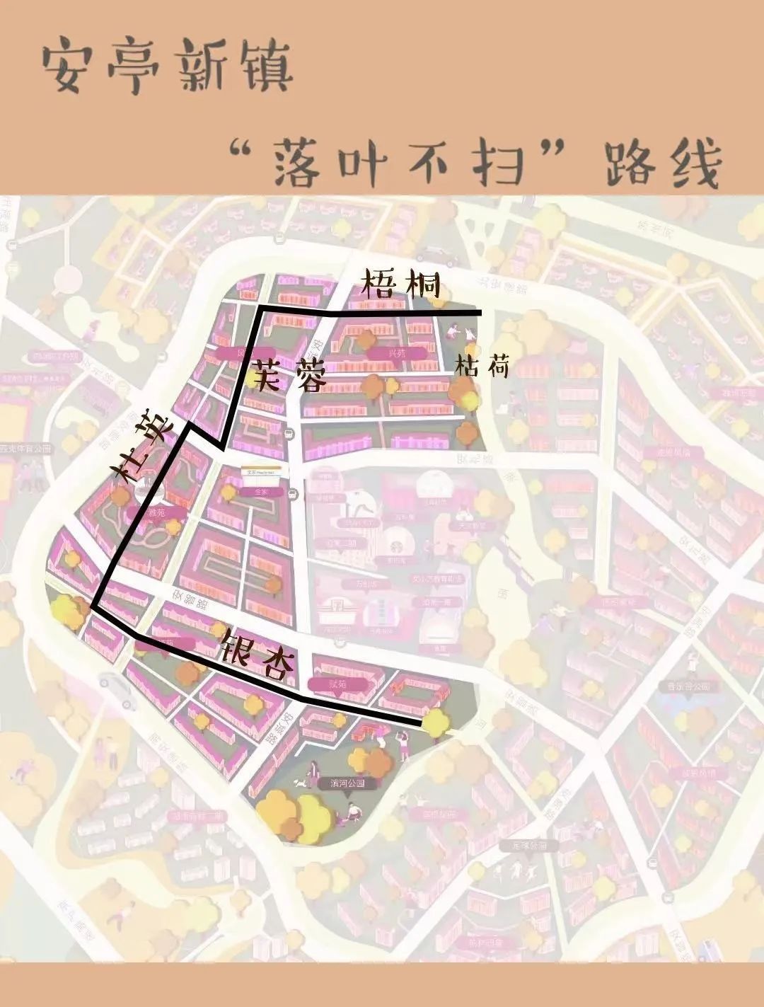 据了解,安亭新镇“落叶不扫”路线涵盖风苑、兴苑、雅苑、赋苑、颂苑等小区,主要树种有梧桐、银杏、杜英、芙蓉等。“落叶不扫”并非放任不管,而是采取了一种人性化的落叶缓扫措施,即当叶子观赏价值褪去再进行清扫,给市民游客提供观赏落叶的时间和空间。在此期间,为确保道路的基本整洁,相关部门每日仍会进行一次全面的普扫工作,有效清除果皮、纸屑等其他垃圾,让美景与卫生共存。