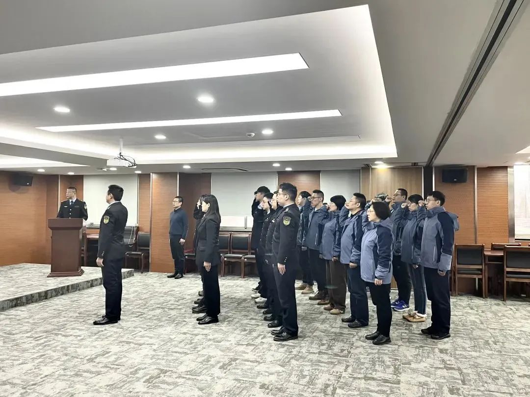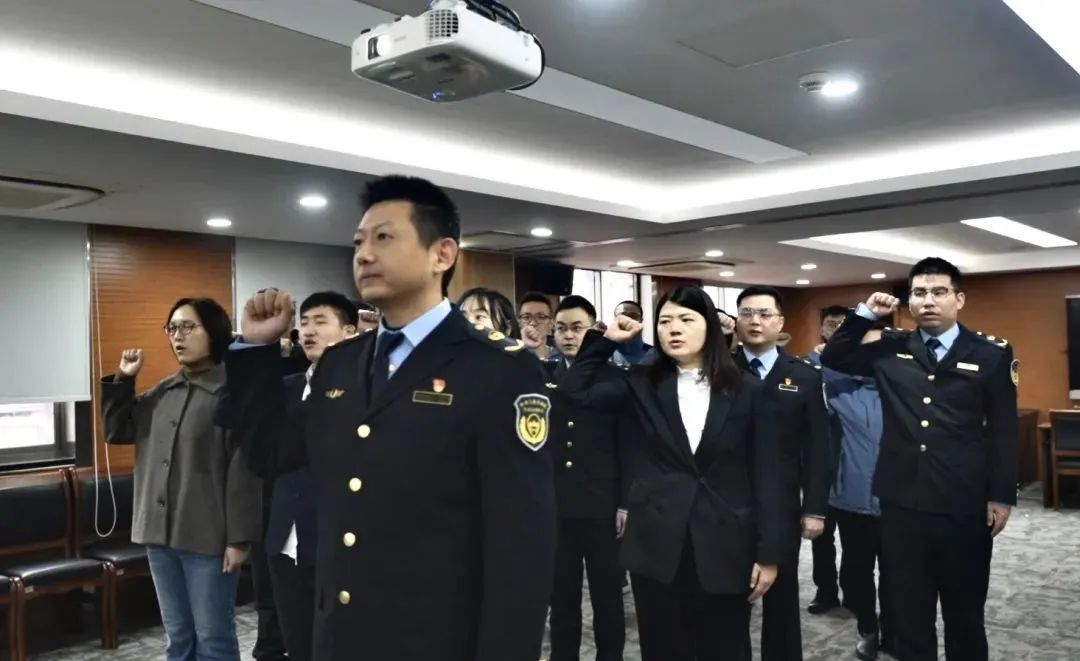 宣誓仪式在雄壮的国歌声中拉开帷幕,宣誓人员身着整齐划一的工作制服,面向鲜艳的国旗,神情肃穆,誓言铿锵。