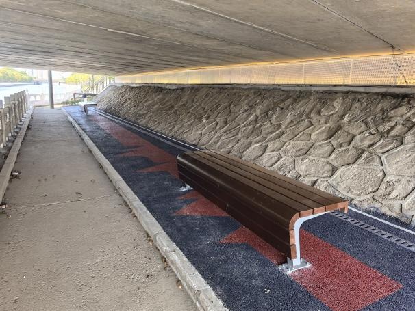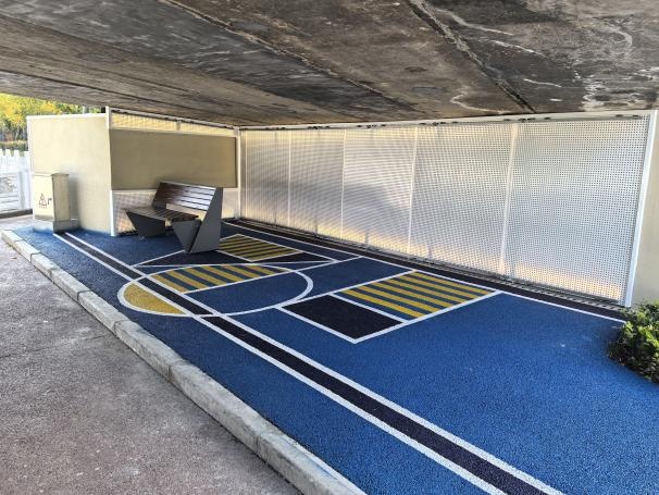 结合长效化提升桥下空间治理方案,以桥下空间环境改造提升工程为核心,精心规划并重新设计茸龙路、茸梅路、光星路、茸兴路四处桥下空间。原先狭长、昏暗的“灰色地带”在铺设彩绘沥青地面后,不仅增添了空间的活力与色彩,还提升了行走的舒适度。加之多元化的趣味座椅,为市民提供了更多休息与交流的场所。整排的创意宣传版面,则成为展示中山街道文化与精神风貌的重要窗口。