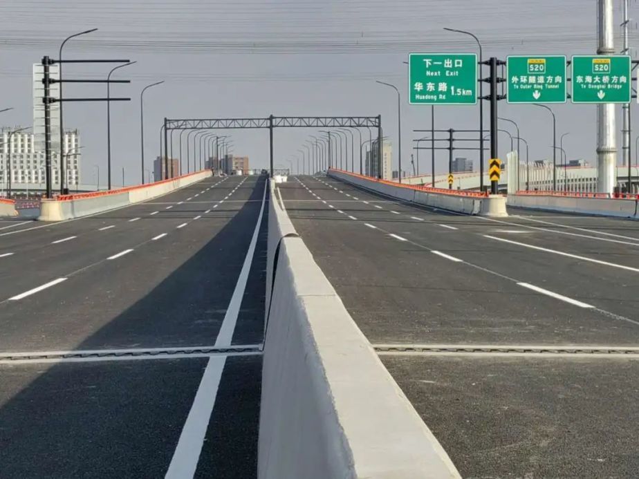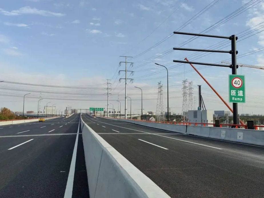 崭新的沥青铺面平整宽阔,沿途的标识标线基本就位,与外环之间的全互通立交也已完成,施工人员正在进行部分附属设施最后的安装和调试……从杨高中路金海路路口一路向东,全长约7公里的金海路改建工程高架主线通车在即。