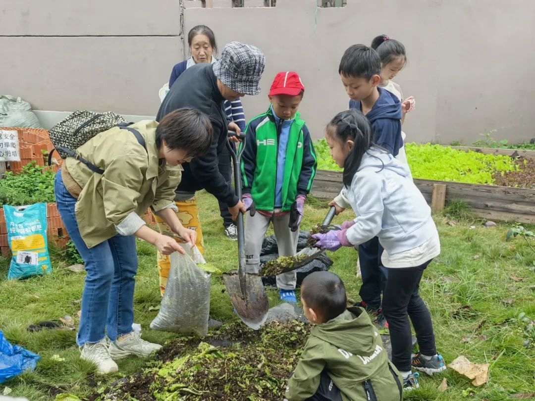在“厨余化春泥”环节,华东理工大学社会学系老师张燕为大家讲解了无臭无味、高效速成的高温迷你堆肥方法。在老师及社区志愿者的帮助下,孩子们将菜叶、豆腐渣咖啡渣等厨余垃圾剁碎搅拌,放入装入保温箱里,化厨余为春泥,回馈大地。活动不仅促进了低碳生活理念的传播,也种下了孩子们心中对环境保护的认知。