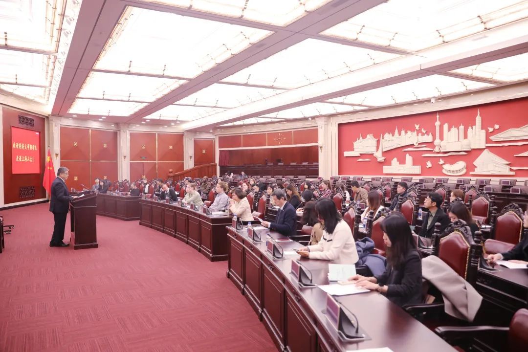 昨天(12月11日),上海市人大外事委和同济大学共同举办“走进人大”活动,来自同济大学政治和国际关系学院的32位外国留学生走进上海市人大常委会会议厅,近距离直观了解中国人民代表大会制度和全过程人民民主重大理念。市人大外事委副主任委员王治平、费俭,同济大学政治和国际关系学院、校留学生办公室相关负责人参加活动。