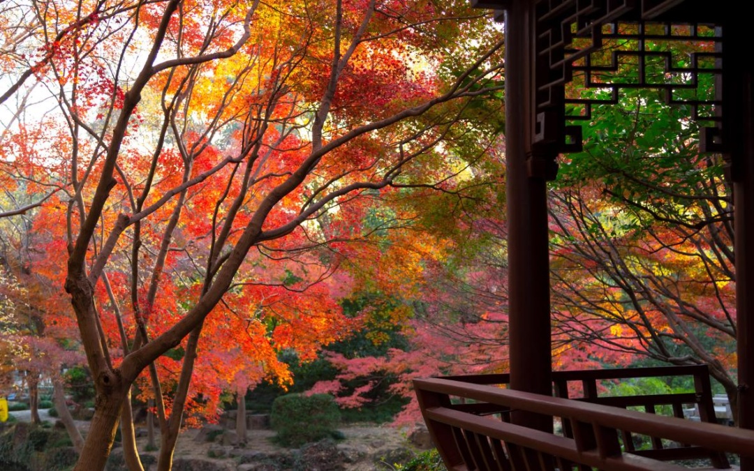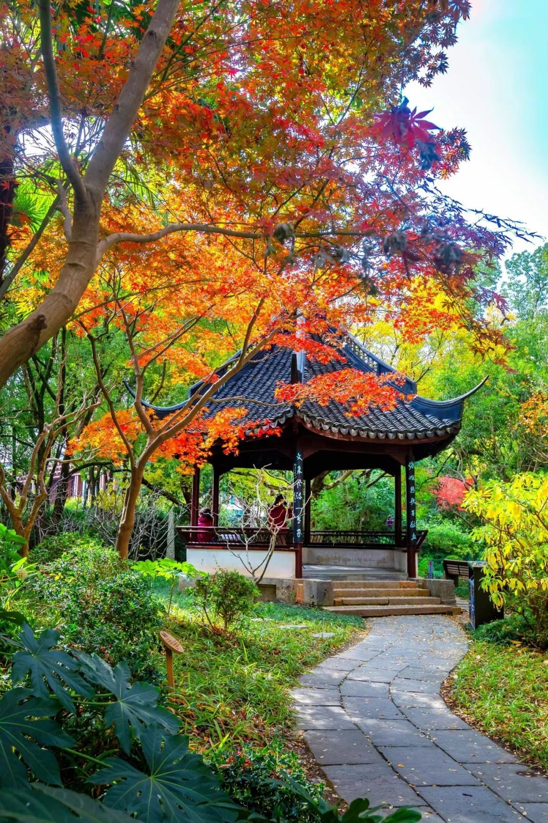 园内的古园林、古建筑在这个季节也因融入斑斓秋色而充满了不一样的美。