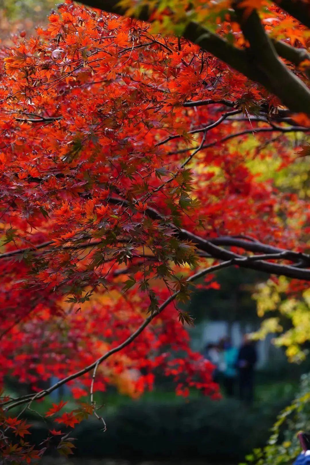 主干道桥堍、玉樊亭、雪海堂庭院、盆景园等处,各类叶色树和红枫热烈而奔放,编织着一场场视觉盛宴。