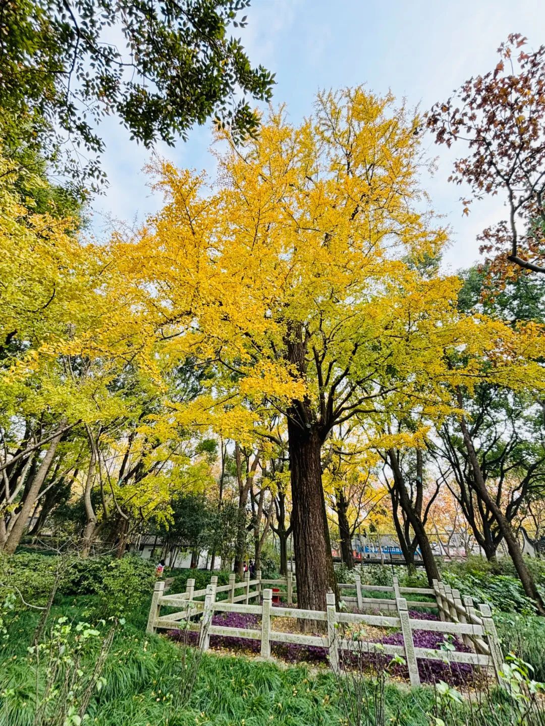 这个时节从走进古猗园的那一刻起,就有强烈被惊艳到的感觉。“只言春色能娇物,不道秋霜更媚人”。园内由鹅黄、灿金、橙红、棕褐各色交织的画作,绚烂而迷人。