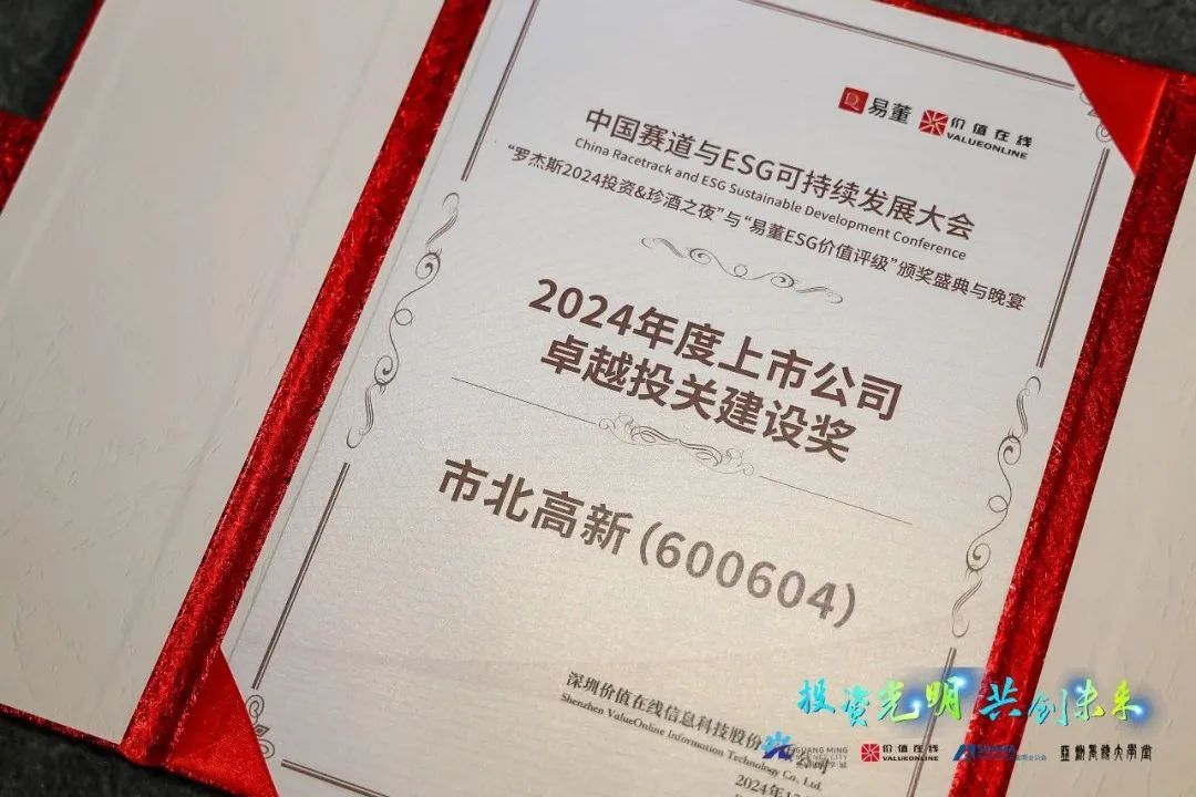 与此同时,凭借自身多元的投资者沟通渠道以及严谨高效的信息披露机制,市北高新还在“中国赛道与ESG可持续发展大会”上获颁“2024年度上市公司卓越投关建设奖”。