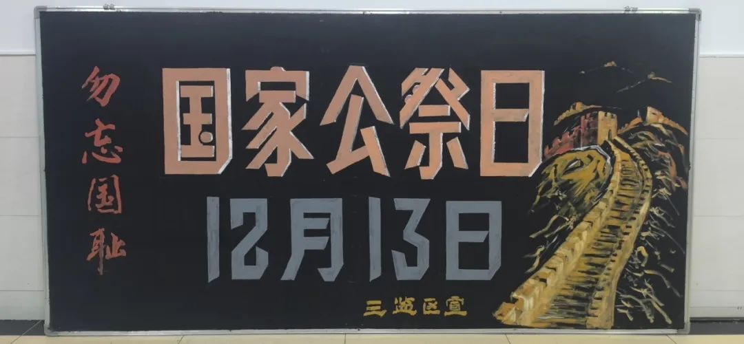 在监狱民警的引导和协助下,罪犯将醒目的粉笔字整齐的写在国家公祭日主题板报上,以共情共鸣激发起爱国情怀,时刻提醒着所有人勿忘国耻。