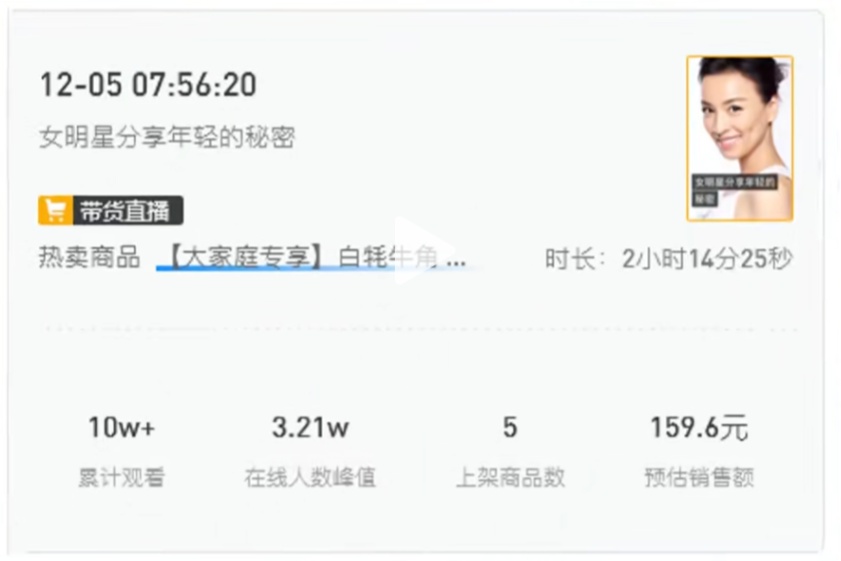 据新快数据平台显示,张庭个人账号在9月初恢复直播,直播内容多为健身、护肤、日常保养等内容,12月初逐渐试水恢复带货,在12月5日开播2小时带货了部分化妆品,不过销售额仅有159元。