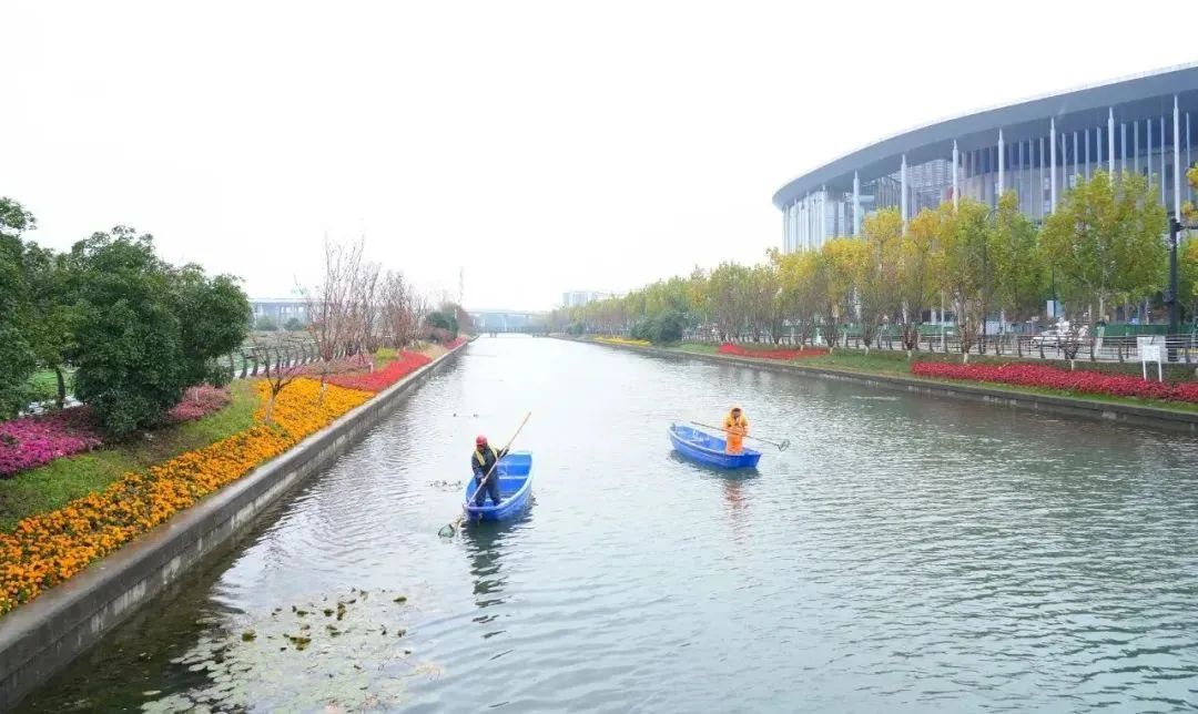同时,徐泾镇在河湖文化建设上不断挖掘历史,开展多元水文化载体建设。小涞港沿线贯通防汛通道与生态廊道。整治中,通过建设进博文化主题公园、绿地,为市民打造舒适惬意的滨河风光。现如今的小涞港河道沿线有人行步道、栈桥、亲水平台等,成为居民散步休闲的好去处。