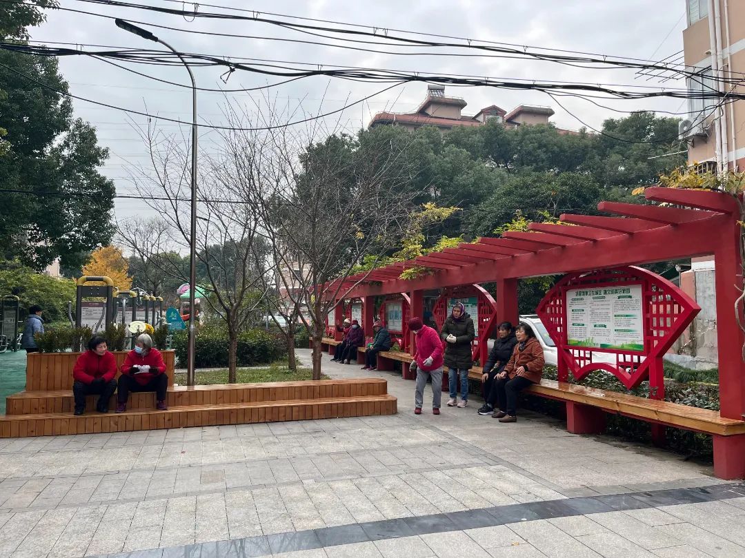 西渡街道果园小区建造于20世纪90年代,如今已是老小区了。小区内公共休闲设施缺乏、凉亭陈旧、花园花草单一,在居民区党支部、居委会的支持下,居民一起共议、共商如何提升公共空间,聚焦“一老一小”,在现有的资源基础上进行优化调整,短短两个月的微改建,这个冬天,不仅老年人有地方休憩,小朋友也有地方玩耍,一起快乐共享社区公共空间,“微更新”带来了全小区的“好心情”。