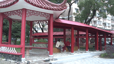 凉亭的水泥凳子变成了木凳,坐着也不凉了,长廊也有了屋顶,夏天不怕晒,冬天不怕大风吹。花坛、花箱里的绿植花卉全部更新,周边还设置了阶梯式木凳,十几个人一起坐也不拥挤。