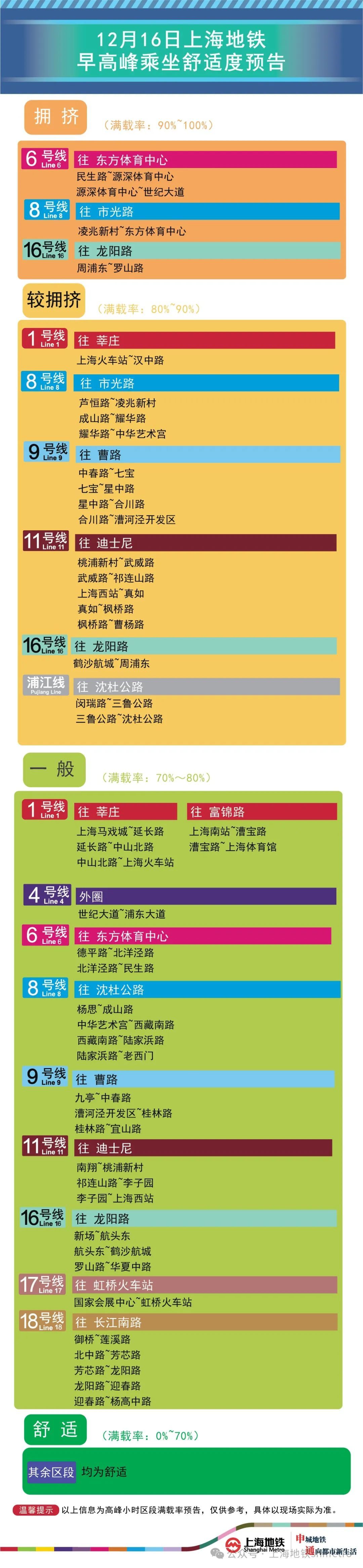 为提升上海地铁早高峰期间出行服务水平,提升乘客乘坐体验,上海地铁向乘客提供乘坐舒适度预告,方便乘客提