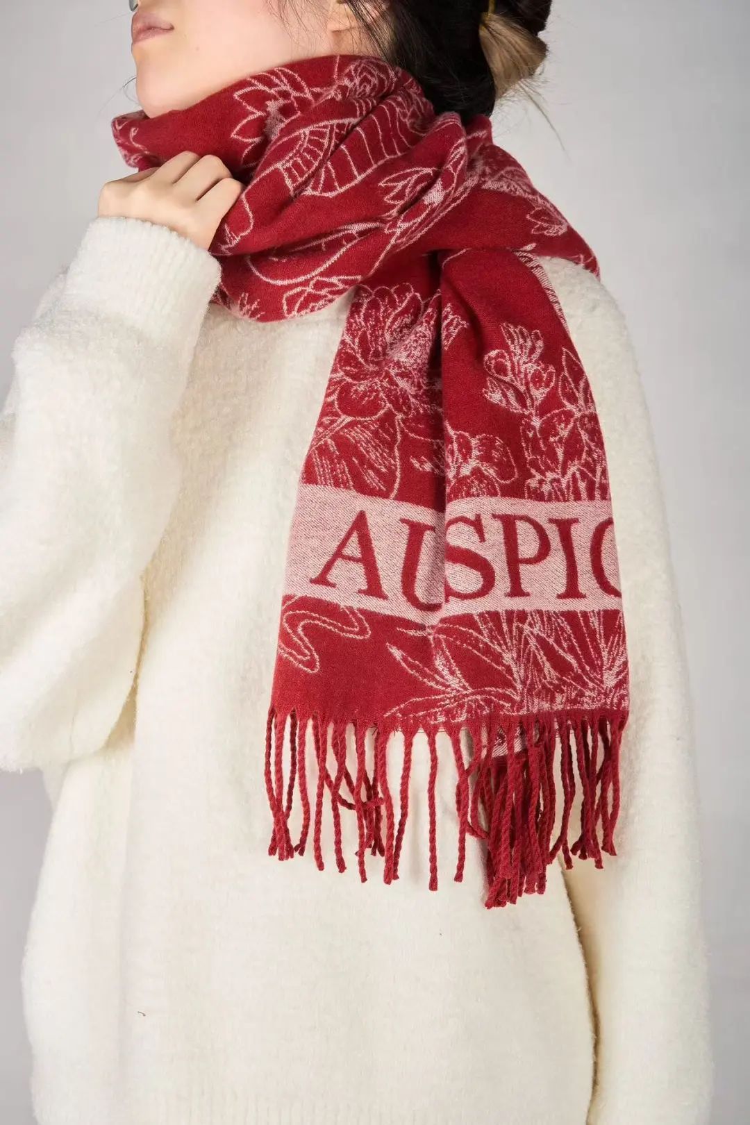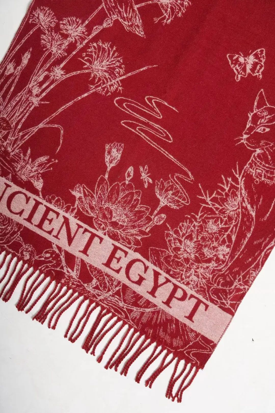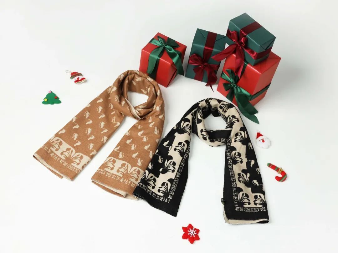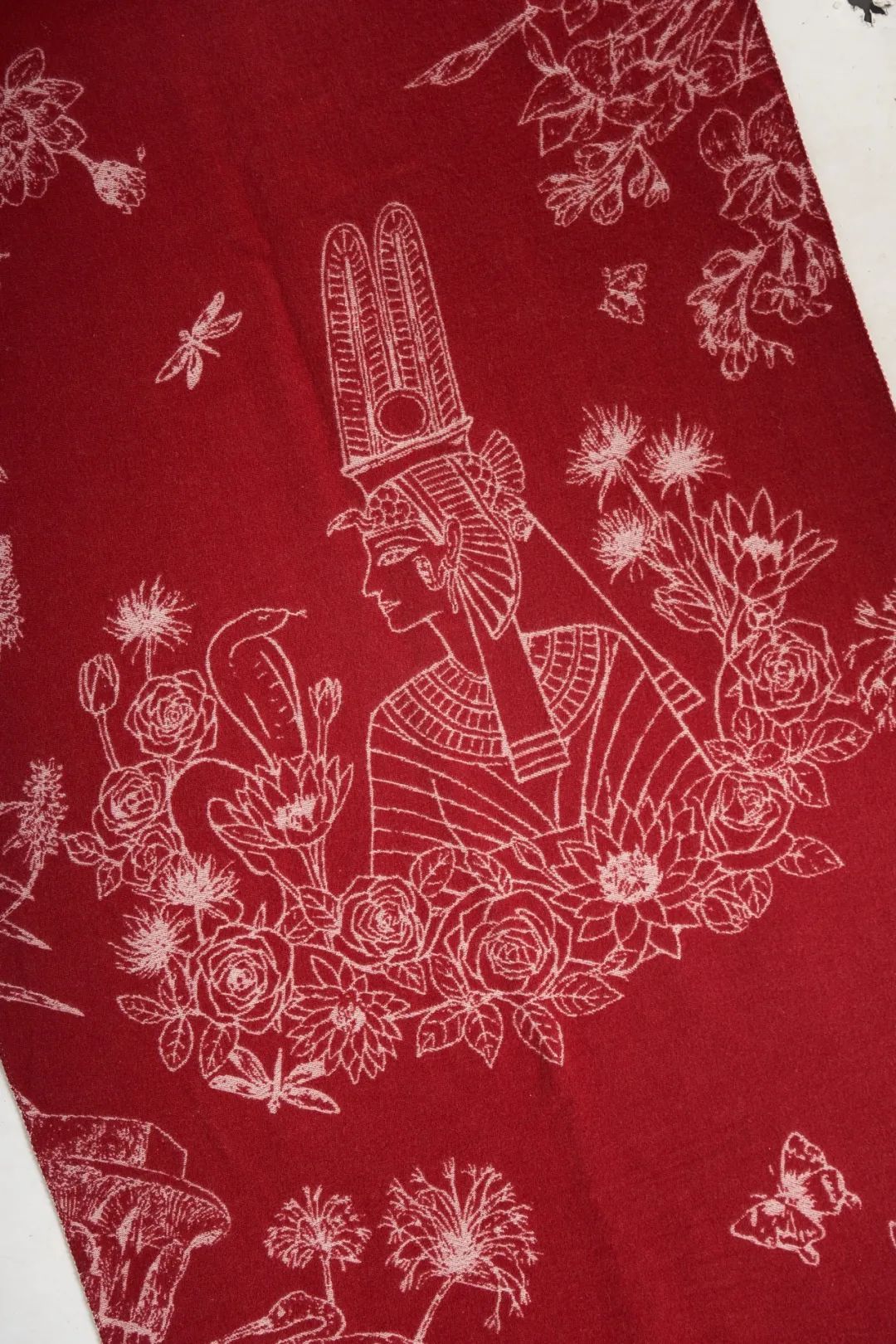 围巾提花精致,埃及众神与女王之姿交织,细密纹理尽显高端品质。面料轻柔,精选高品质保暖材质,贴身裹覆,暖意与舒适并存。剪裁合宜,薄厚恰到好处,披肩围巾随心而变,演绎多样风情。