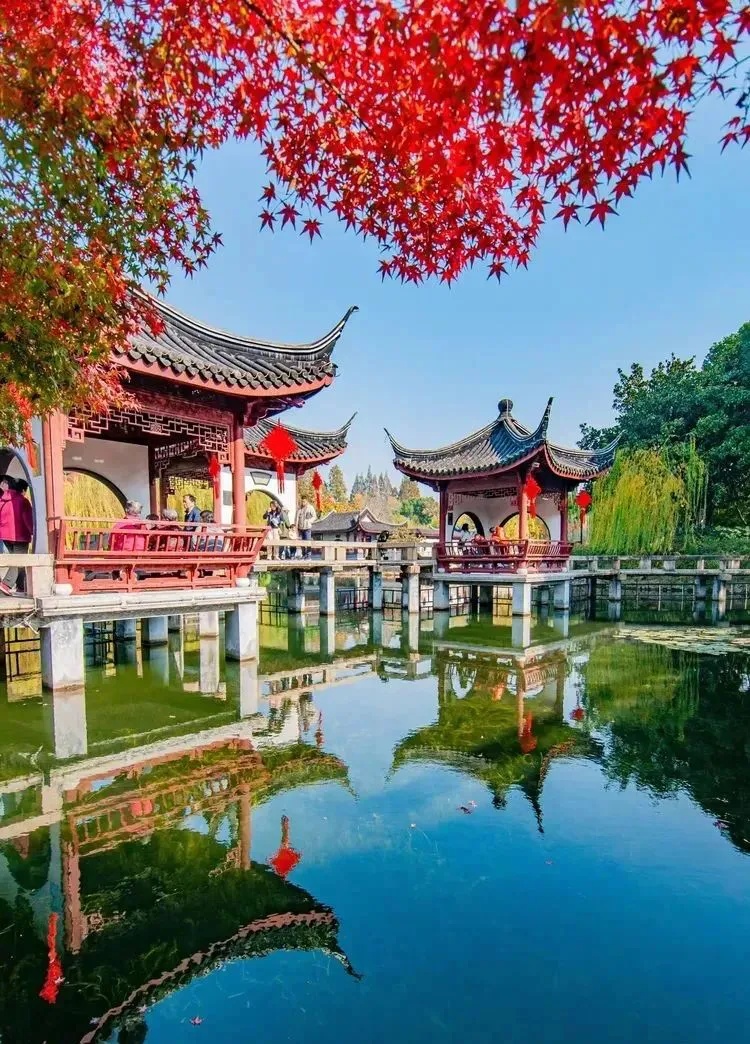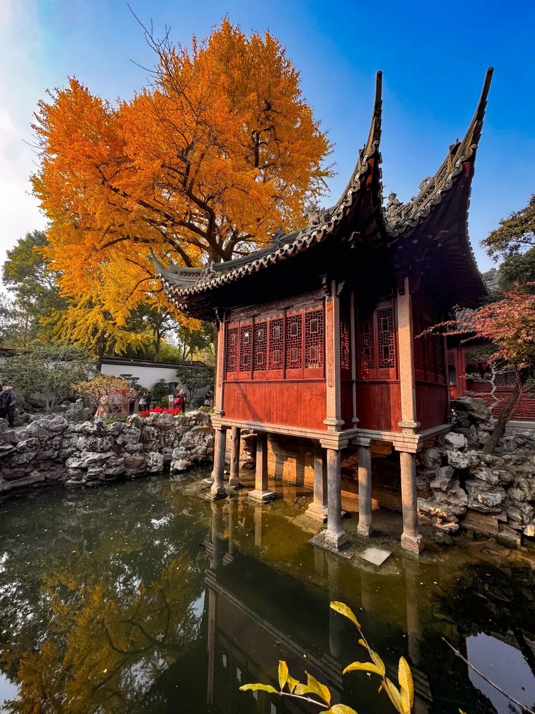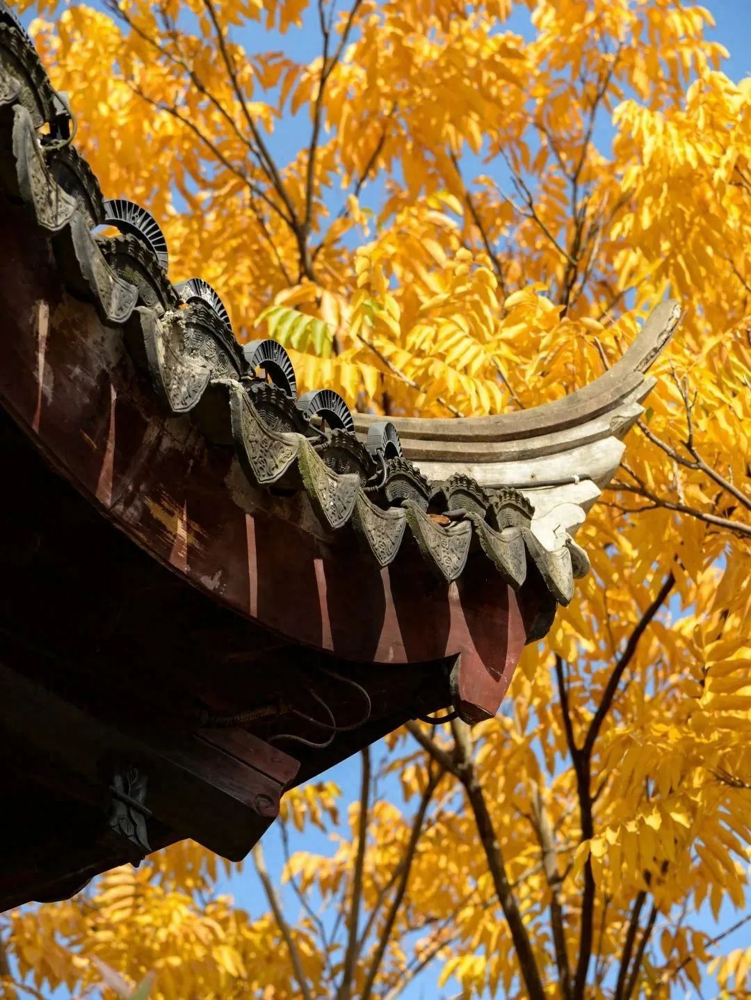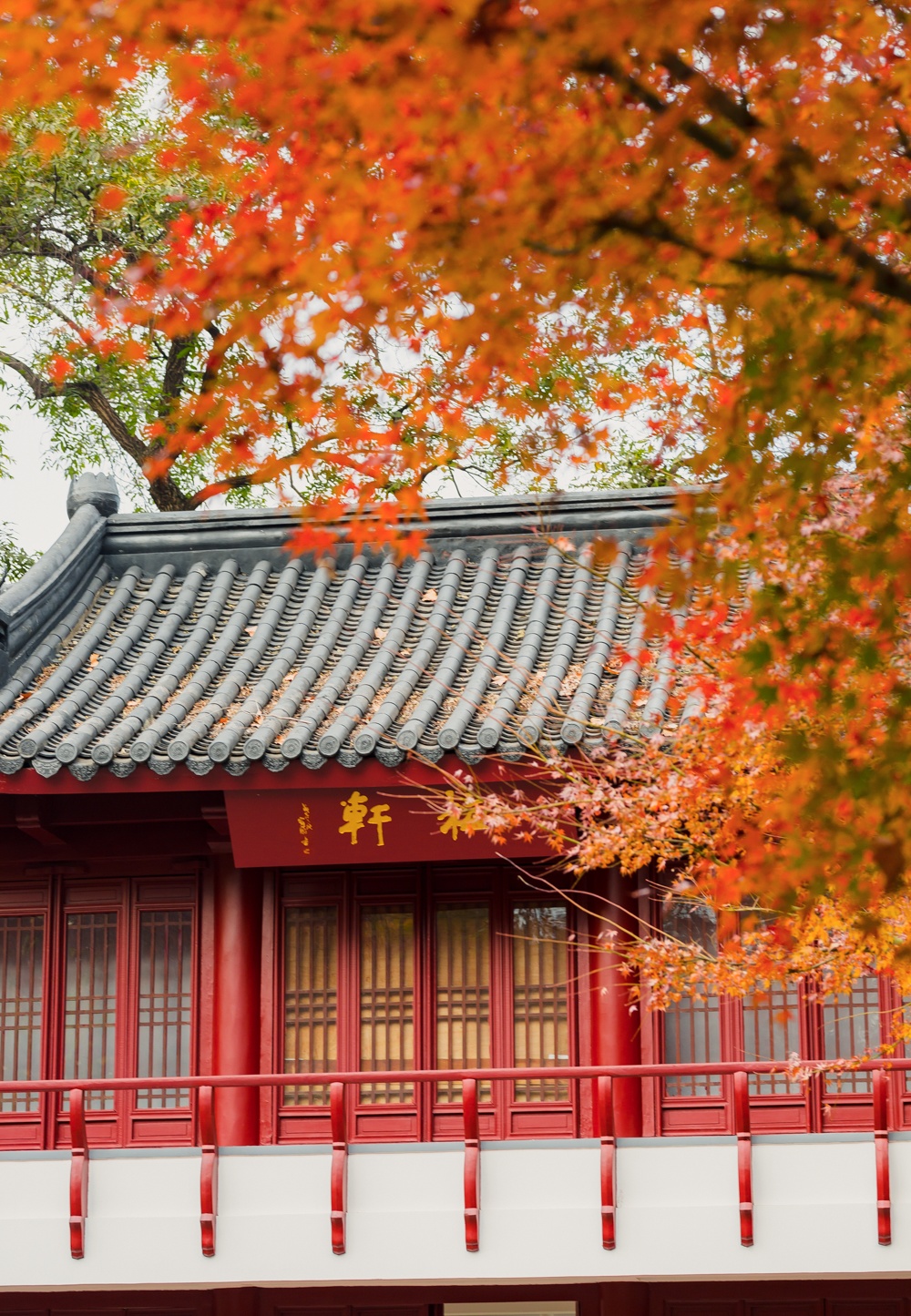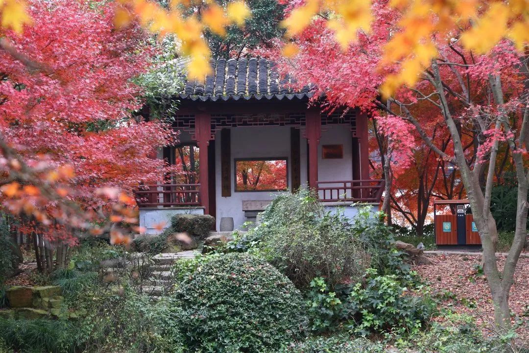 园内的古园林、古建筑在这个季节也因融入斑斓秋色而充满了不一样的美。