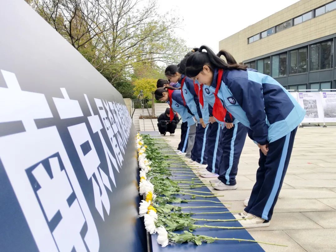 前来参加活动的市民和学生为死难者献上鲜花,鞠躬哀悼。上海市宝山区教育学院附属中学的学生许程森告诉记者,“老师给我们讲述过南京大屠杀。今天来参加这个活动后,我对这段历史的认识更加深刻了,也更懂得了要铭记历史,勿忘国耻。”同校学生潘秋伊表示:“我今天的心情很沉重,回想到30万同胞在南京大屠杀中惨遭杀害,非常痛心。这段历史不容被遗忘。作为青少年,我们要珍惜和平,奋发图强。”