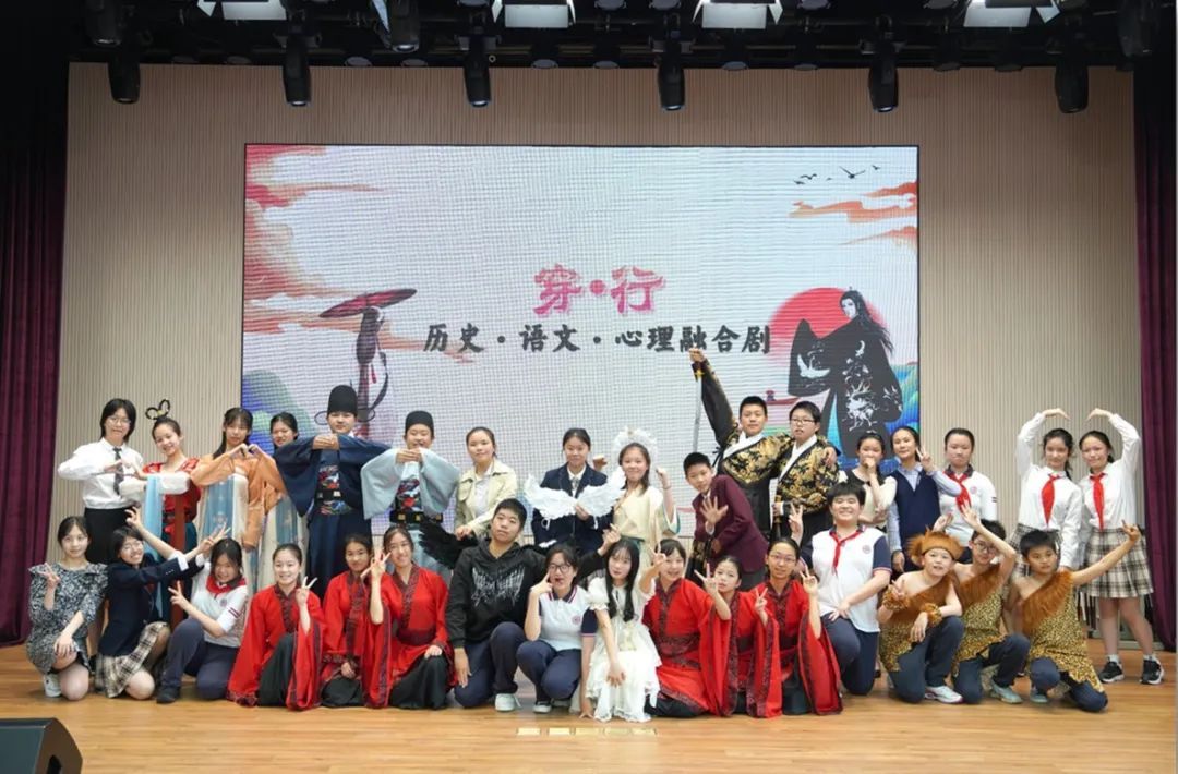 学校每学年都会开展深受学生喜爱的“YUE·燃”学科节。学科节体现了新课程“发展每一个学生的核心素养”和该校“为学生未来发展奠基”的办学理念。语文组开展“遨游神话天地,感受文化魅力”思维导图设计、“未来世界,未来生活”科幻剧展演、“诗画意境”诗文月历、“楹联撰写传和韵,墨笔欢书展俊才”创意对联等四大主题活动;政史地组开展“校园AED选址方案”项目化学习探究、“宪法伴我成长“主题探究活动;综合组组织“Logo设计我来赛”“青春旋律我来唱”“数字素养我来创”三大主题活动。语文组还与历史、心理学科联合创编排演了融合剧《穿•行》,展现了仓颉造字的传说和汉服文化的历史;艺术组开展“课桌舞”“声乐”“乐器”等专场的展演,提高学生的艺术修养。通过学科节的活动,不仅为学生搭建了展示自我的舞台,也激发了学生学习的兴趣,加深了学生对学科知识的理解与运用,同时,也培养了团队合作、创新思维,让学生得到全面的发展。