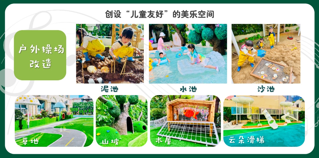 在空间建设方面,幼儿园有着独特的设计。空间中的一米以下是幼儿可操作、互动、选择、替换的材料与环境,一米以上则是多元感受的艺术装置。2024年暑期,音幼对有限的户外空间进行全面升级改造,打造了 “沙水泥一体化” 幼儿户外活动场域,满足不同年龄段幼儿 “高质量户外2小时活动” 的需求。