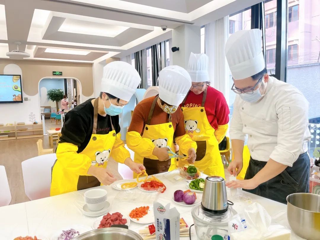 在营养师的指导下,家长们亲自动手,为宝宝们制作了两款美味的餐点。整个过程中,家长们不仅学会了如何挑选食材、搭配营养,还掌握了烹饪辅食的基本技巧。