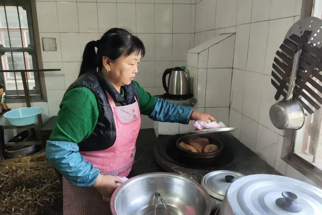 这道原本濒临失传的佳肴——道昇砵肉,能够重回人们餐桌,得归功于东庄村的“巧厨娘”朱久珍。作为“阿九农家乐”的主厨,朱久珍自幼听闻关于道昇的故事,对道昇砵肉心向往之,决心复兴这道美味。从耳闻到亲手尝试,再到这道菜重现江湖,朱久珍历经无数砵头的损耗。“制作这道菜需要极大的勇气与耐心,全程不加水,历经三小时烹煮,稍有差池,火候控制不当便可能让砵头破裂,导致菜品失败。我经过半年的探索与学习,才终于掌握其中的诀窍。”朱久珍说道。