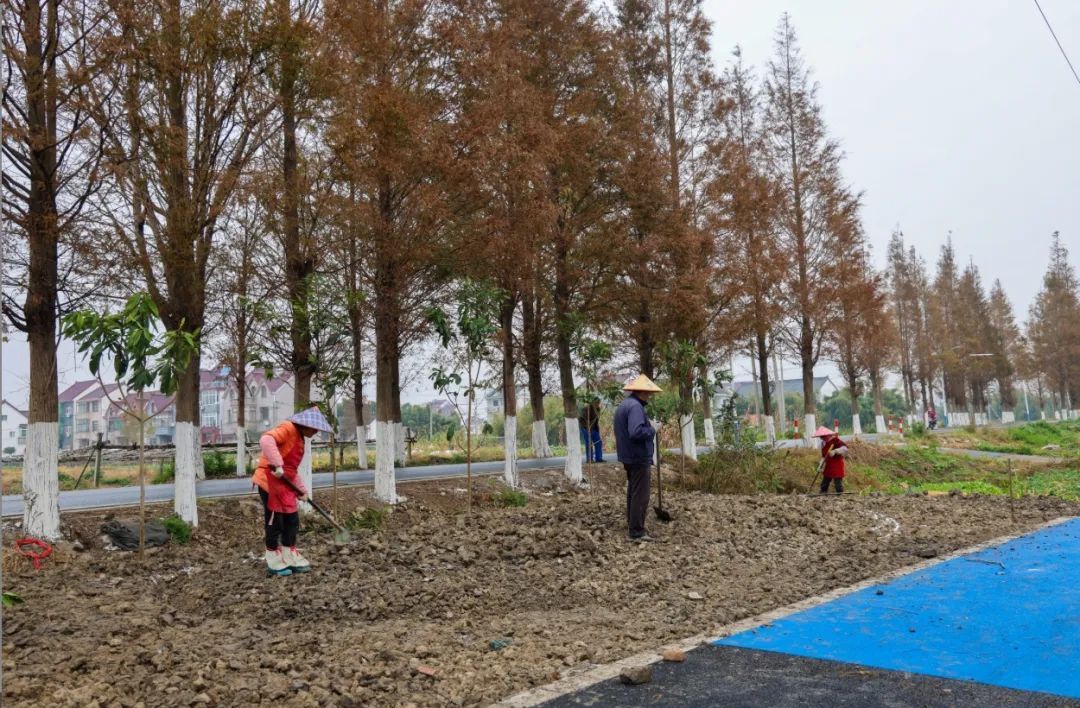 12月5日上午,记者在朱泾镇万联村看到,一排排农宅前,经过修整的村路干净整洁、平坦宽敞,精心设计的小三园规划齐整、别致有序。小三园内,绿意盎然的蔬菜和色彩斑斓的花卉交相辉映,工作人员正在种植兼具观赏价值和食用价值的各类果树。