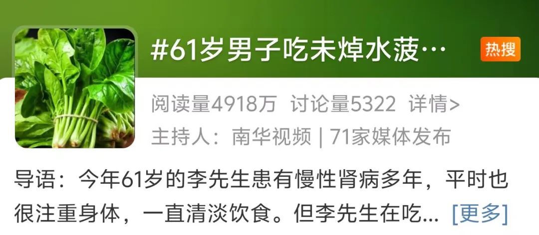 #61岁男子吃未焯水菠菜后肾衰竭#