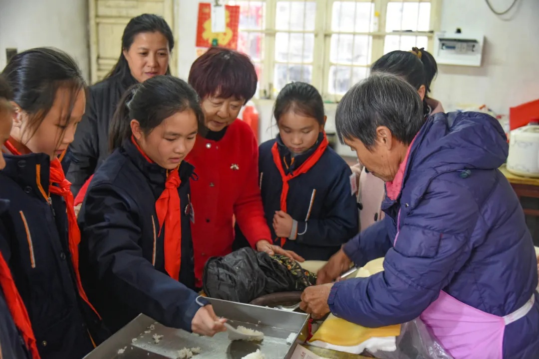 酒糟的醇,遇见了咸肉的鲜,香喷喷的酒酿糟肉引得大家食指大动。“我们让孩子们从学校小课堂走进社会大课堂,走进乡间,切身地了解、体会中华优秀传统文化。”戬浜学校老师管施恩表示。
