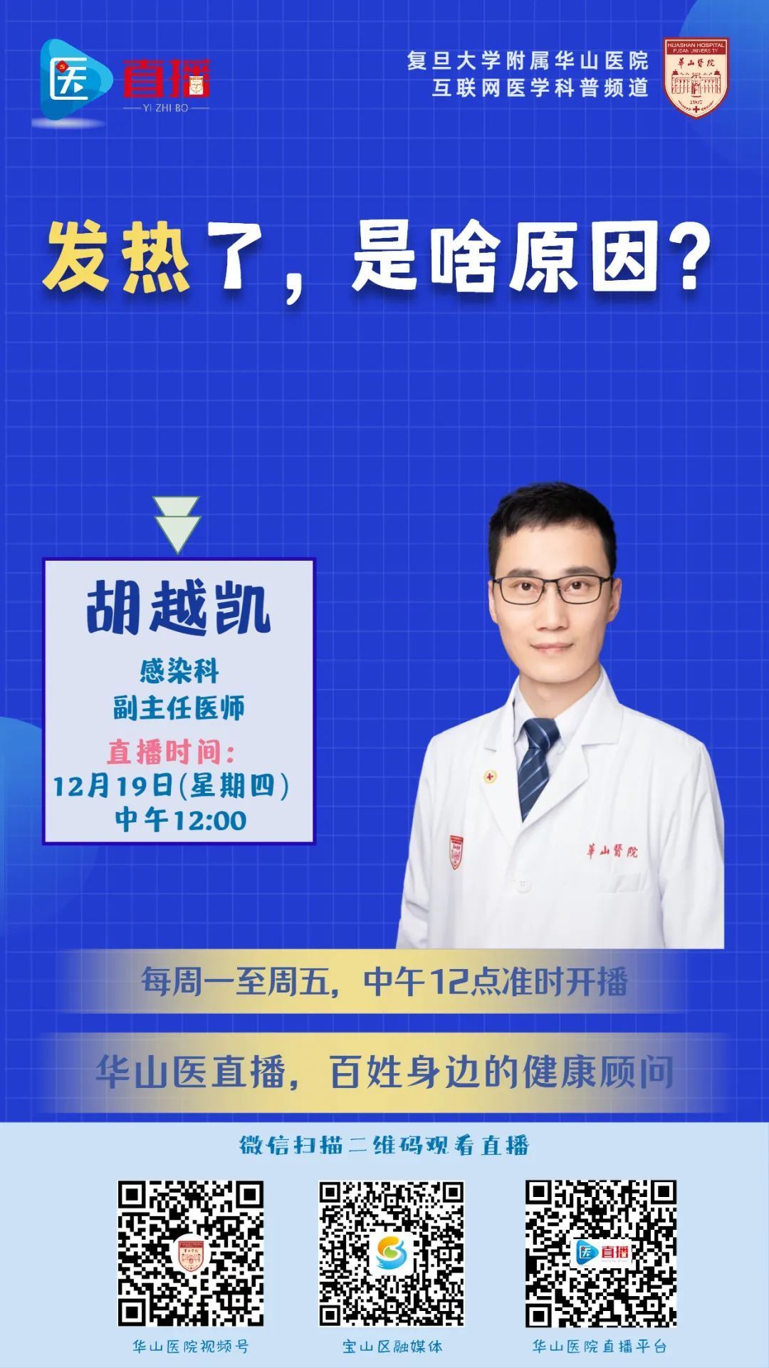 发热是指病理性体温升高,是临床上最常见的症状之一。面对发热,我们该如何判断其原因并采取合适的处理措施?本期医直播,胡越凯将为大家讲解如何正确处理发热的症状。