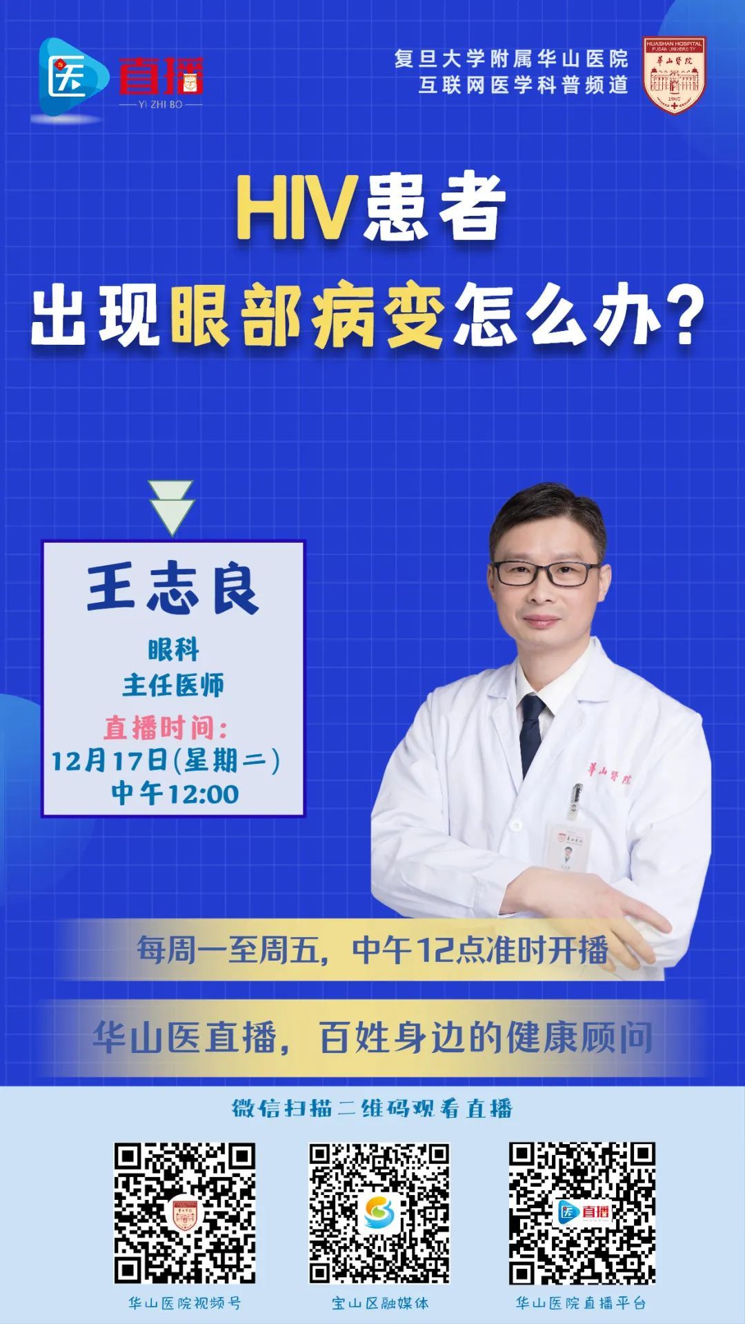 随着“高效联合抗反转录病毒治疗(HAART)”日渐成熟,在我国,大多数艾滋病患者可以得到规律的治疗。根据我国调查发现,26.3%的艾滋病患者都有眼部并发症,这些患者最终都会失明、甚至摘除眼球。艾滋病患者能否避免这些风险?本期医直播,王志良和大家聊一聊“HIV患者眼病的防与治”。