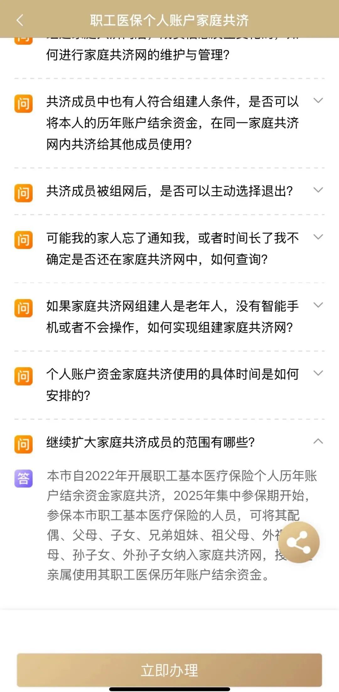 对于医保个人账户家庭共济的相关问题,您可以在专区向下滑动,浏览“政策问答”板块以获得全面的解答。