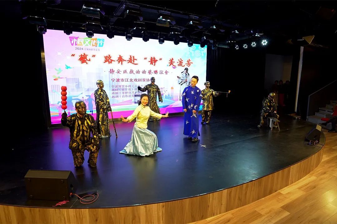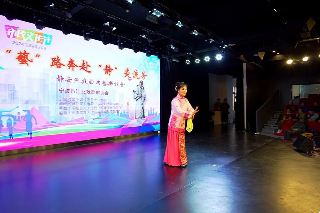 12月15日,“艺”路奔赴“静”美流芳——静安戏曲曲艺联谊会在北站街道文化中心北站剧场举行。宁波市江北区戏剧家协会受邀率宁波小堇风甬剧团的演员们来到现场,和上海的戏曲演员与戏迷朋友们进行戏曲交流活动。