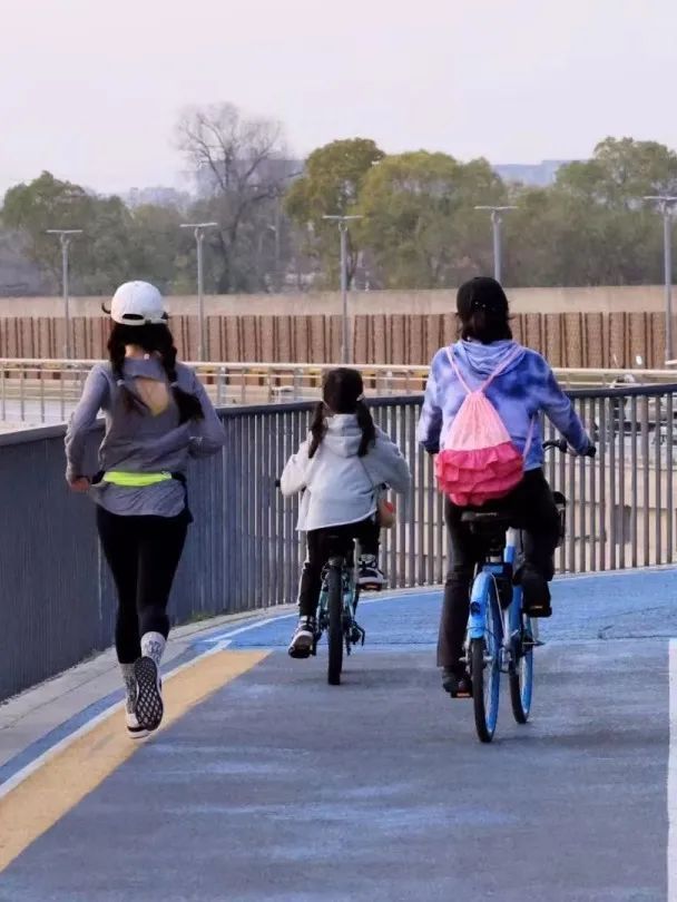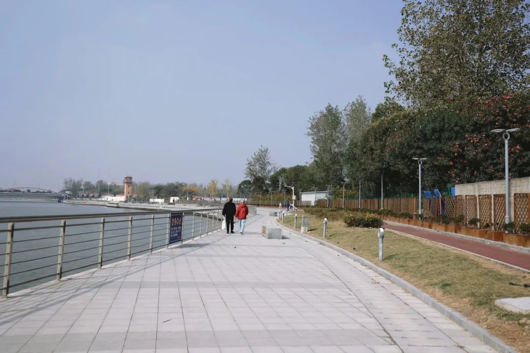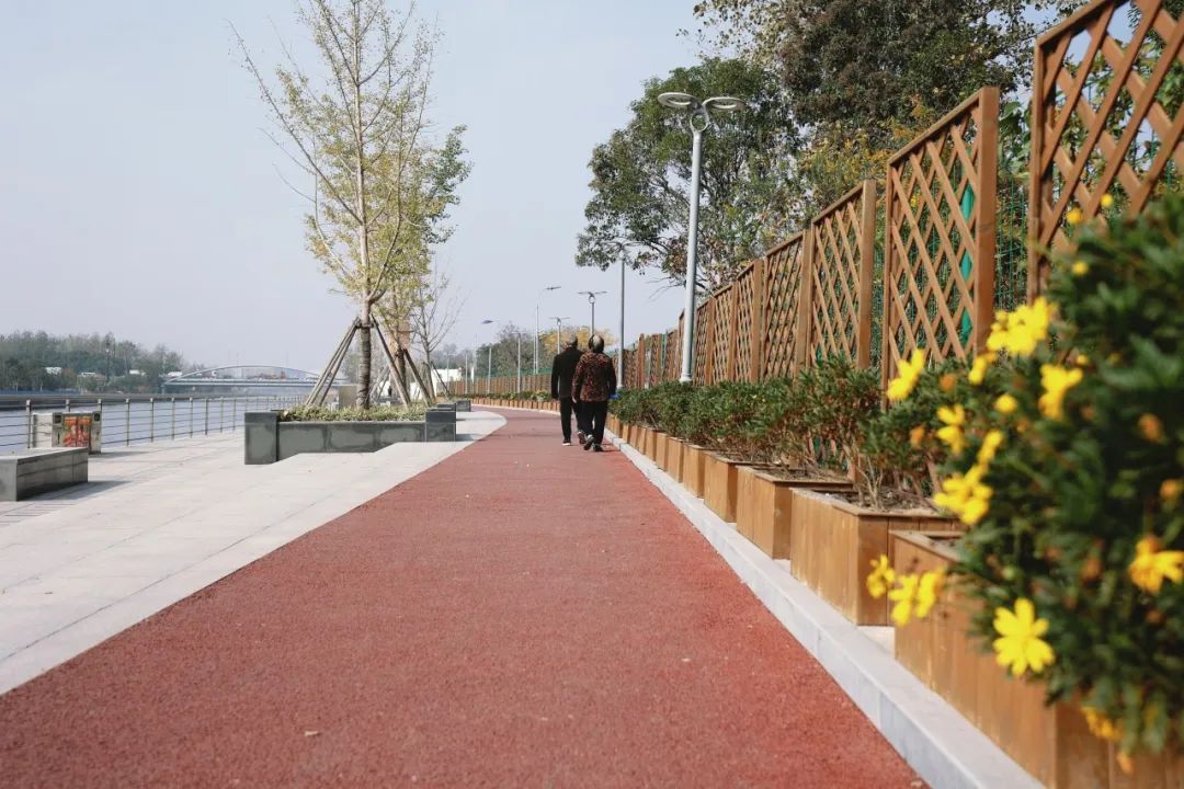 改造前,这段岸线是凹凸不平的石子路,沿线还有不少企业和运输码头。如今,石子路被彩色沥青步道取代,沿岸绿化面积1783平方米。针对市民的夜跑需求,真新街道对滨河步道进行立体化艺术灯光设计,实现灯光与景观相融合。