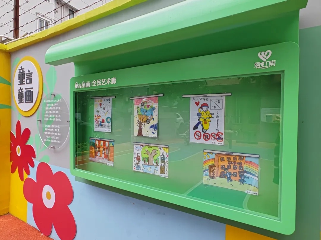 虹南小区最早为化轻公司职工房,小区居民对这里充满感情,因而在“四百”大走访中,不少居民希望将虹南小区的历史记录下来,增强社区居民的归属感。去年,居民区小试牛刀,建造了“化轻时光宝盒”老物件展示柜,深受居民欢迎。在此基础上,今年,居民区依托“自治全民星”项目,对健身区域四周的墙面进行美化升级。为此,居民区以“小区历史故事”“身边好人好事”以及“对小区美好未来的畅想”为主题,向小区各年龄段人群征集文字、绘画、摄影等作品,并进行宣传展示,持续打造“爱虹南”品牌。同时针对小区内无儿童设施的现状,开辟了一块属于社区未成年人的活动场地,丰富他们的户外活动。记者在健身苑看到,这里面积不大,然而缤纷的色彩让原本单调的健身区域“活”了起来。“虹南的故事”娓娓道来了小区的发展历程,甚至还有居民原创的《虹南之歌》,表达着对社区的热爱;充满童趣的图案装点着“儿童美术展览角”,活泼生动,里面展示着孩子们的作品,成为小区里一道亮眼的风景线。“这里改造好后,小朋友们特别喜欢来玩,我们就可以在旁边锻炼锻炼身体,两不误。”在和居民聊天的时候,当阿婆的小孙子得知这些画作来自社区的小朋友时,兴奋地说道,“我也要画画,我也想在这里展示。”文化展示墙建成后,居民区结合街道党建“一居一特”要求,组建居民志愿者,通过培训学习,推出“爱虹南”居民志愿者演讲团队,向前来参观文化墙的居民朋友讲述历史。“文化展示墙不仅美化了小区环境,增加了居民的活动设施,同时借助‘爱虹南’品牌的进一步打造,将小区人心凝聚起来,激发大家对小区的认同感和归属感,传播小区故事,弘扬正能量,打造一个文明和谐的社区环境。”沈怡说道。编辑:程 前