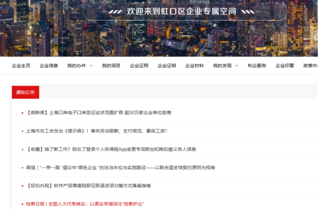 企业可登录以下网址进入虹口区企业专属空间: