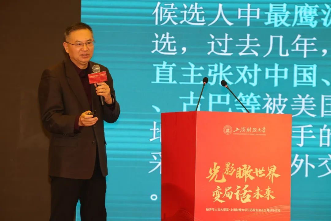 在嘉宾分享环节,江苏省政协常委顾万峰先生主讲《生活美学与思维哲学》,谭雀校友主讲《光圈中的中东人文》,南京大学成汉平教授主讲《特朗普2.0时代的大国竞争对我国机遇、挑战与应对——展望2025我国安全形势》。