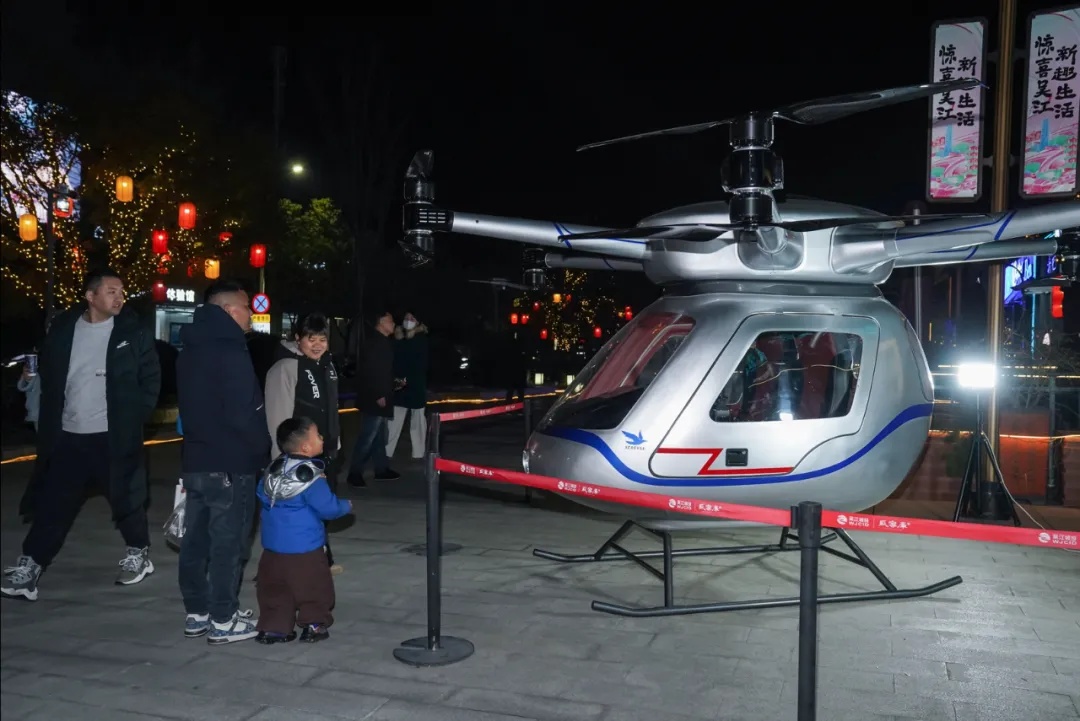 活动现场,酷炫的直升机和飞行汽车吸引众多市民争相拍照打卡,它们是来自海鸥飞行汽车集团有限公司的明星产品。