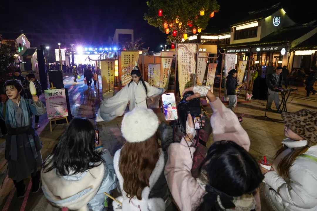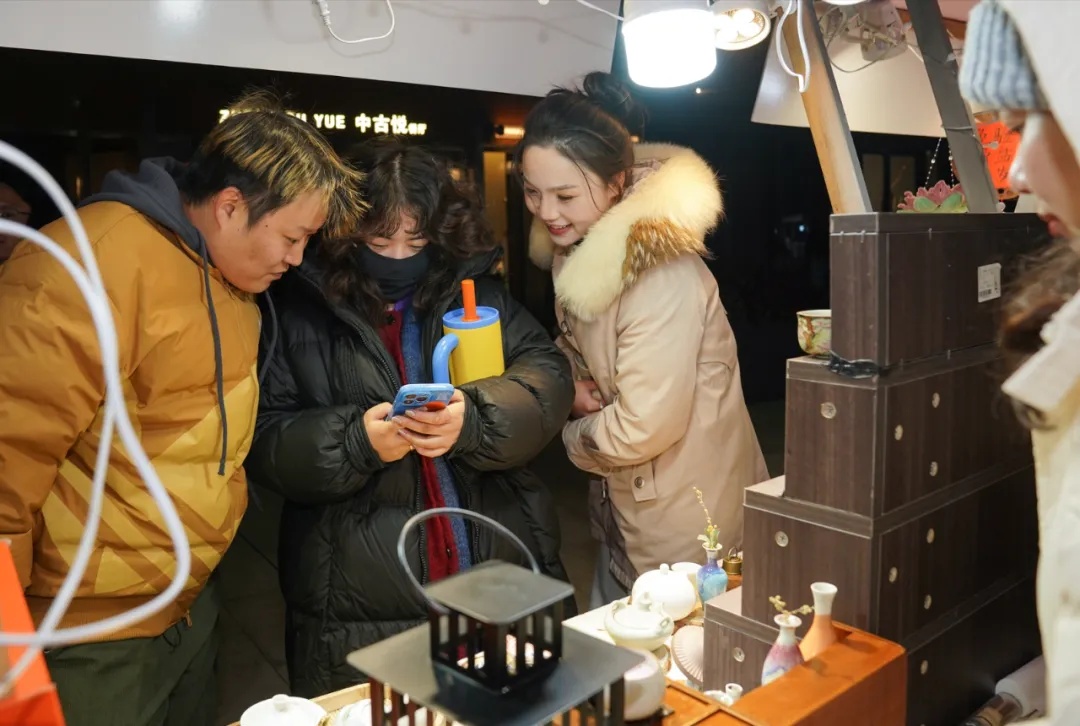 另一旁的新趣市集上,整条街的特色美食香飘四溢,很多摊位前都大排长龙,各类手工艺品琳琅满目,“好吃、好玩、好买”且价格实惠,让市民们高兴而来,满载而归。此外,活动现场的穿越快闪、国潮电音、非遗体验、AI拍照、乐队演出、NPC集邮等环节热闹有趣,给市民们带来一场场视听享受和奇妙体验,无论是大朋友还是小孩子都玩得不亦乐乎。