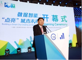 2018年10月,周文波在“数据智能点亮城市未来”开幕式上致辞