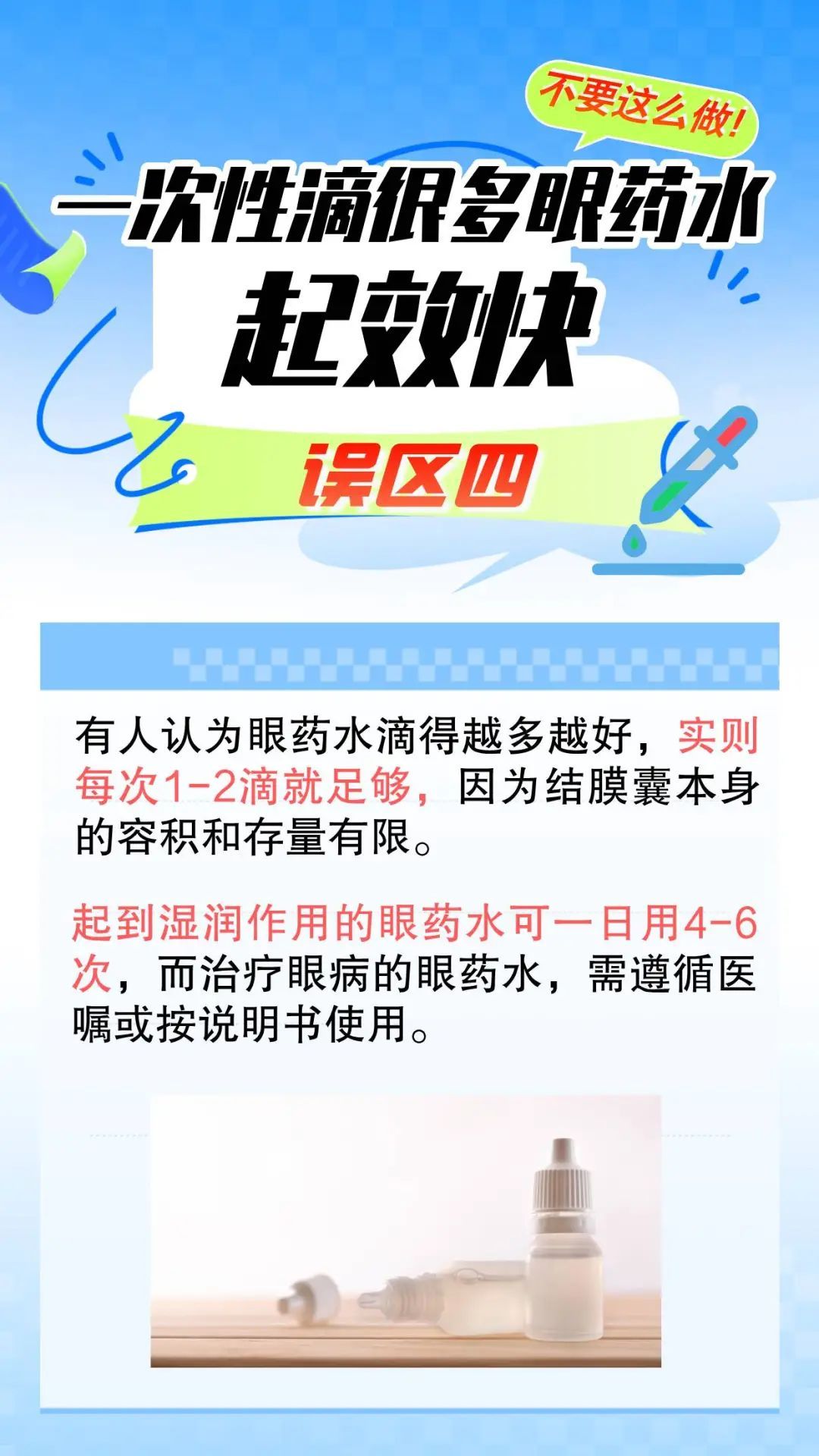 另外,不要眼睛干燥就滴眼药水,很有可能适得其反。如果频繁使用,眼药水中的防腐剂对眼睛泪膜有一定损害,严重可致盲。