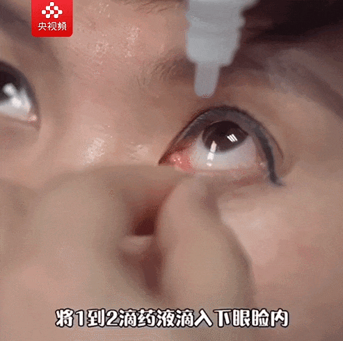 用食指扒住下眼睑往下拉,同时眼睛往上看,头轻仰,眼球和下眼睑中间形成的空袋,就是结膜囊的位置。眼药水悬空距离结膜囊2-3厘米,滴1-2滴即可。