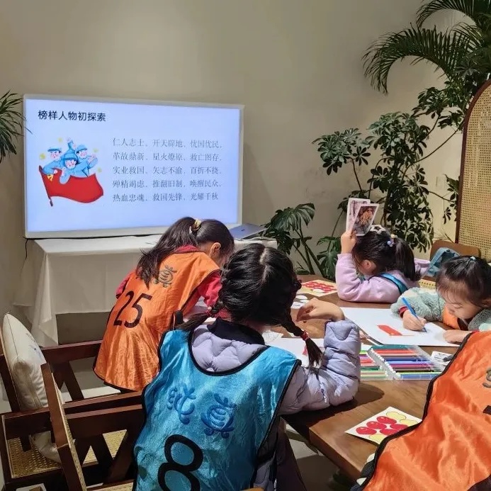 紧接着,主讲老师为孩子们分发革命人物手卡,引导他们分组讨论、分享心得。卡片上的文字与图片,让孩子们更加直观地了解了革命先驱的生平事迹,他们被革命先辈们坚定的信仰与不屈不挠的精神深深打动。