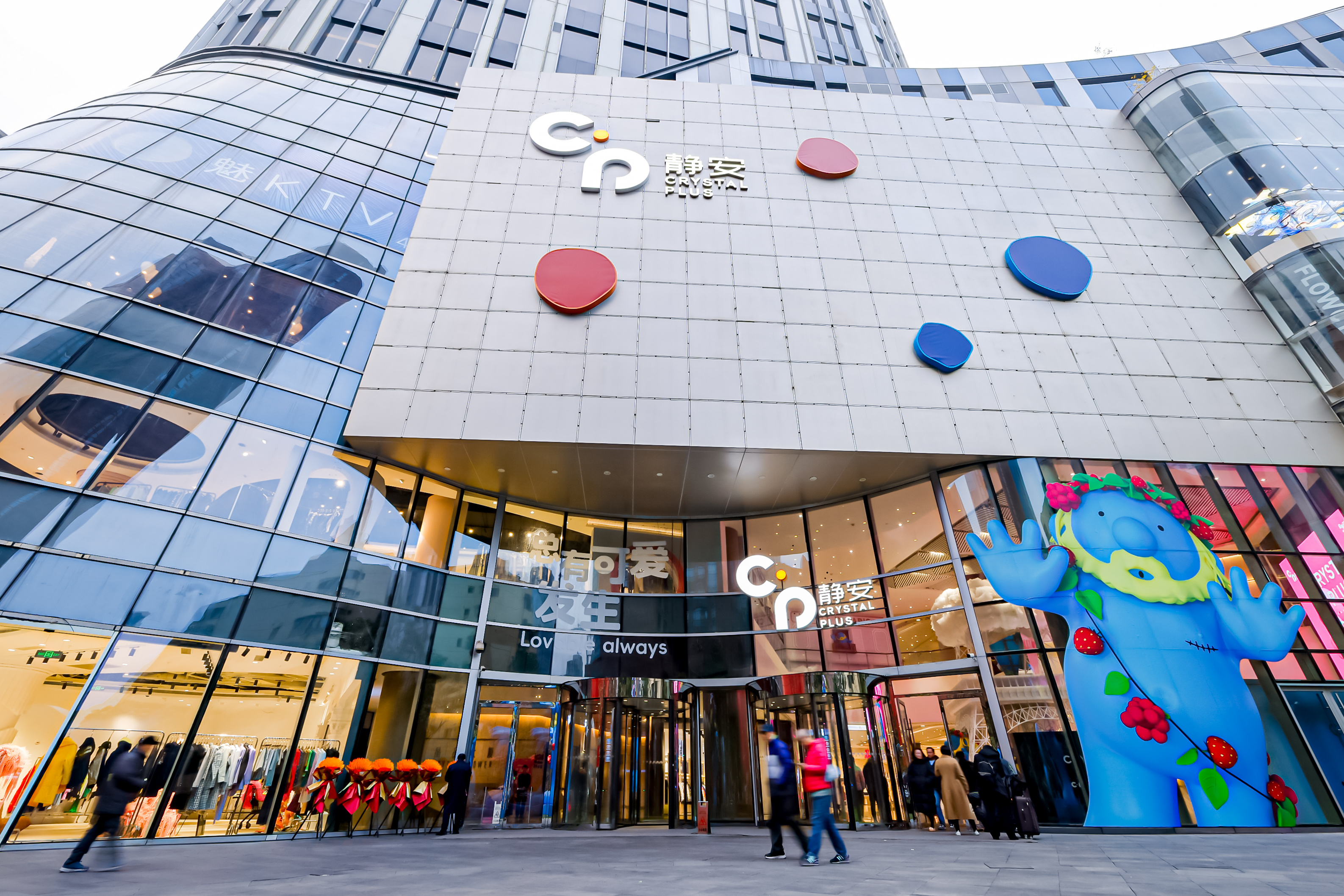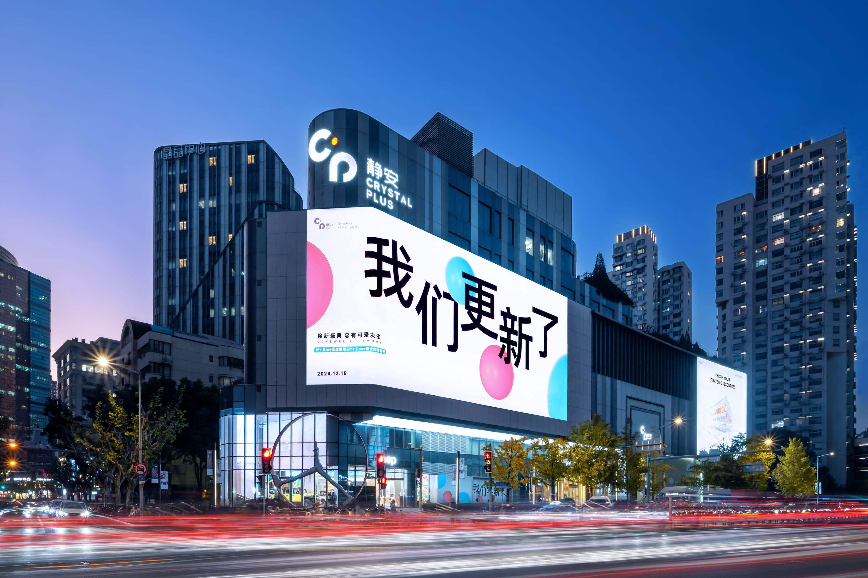 常德路南京西路十字路口,CP静安焕新改造的巨幅裸眼3D屏幕已正式亮相,与8米高的Mr.Blue、Mr.Rose共同塑造出项目全新形象。愚园路入口处,6米高的Mr.Blue向众人挥手,迎接络绎不绝的新老消费者。