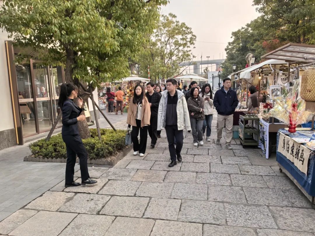 蟠龙天地以创新的城市更新改造方式,将文化、自然和商业融为一体,是“人民城市”理念的生动实践。大家打卡了借园、香花桥、高隐读书堂等点位,并借助有声导览,深入了解相关历史文化背景,在欣赏历史古韵与现代人文交融之美的同时,真切感受到“建筑可阅读,街区可漫步,城市有温度”。