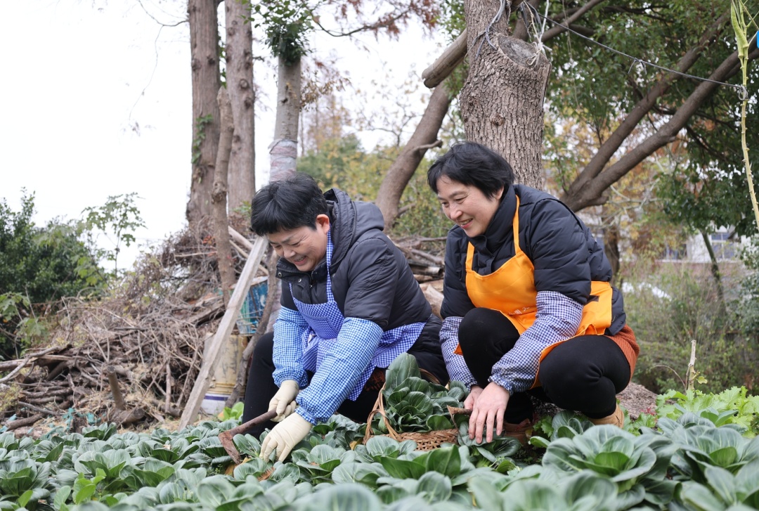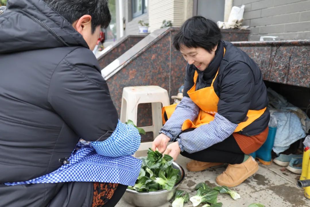 走进顾美林家后院的小菜园里,一片绿油油的矮脚青映入眼帘,层层叠叠铺满地面。“霜降过后的青菜,口感更加清甜软糯,用来制作菜饭最适合了。”顾美林一边熟练地挑选着青菜,一边与好友范明娟谈起往事,“小时候家里条件有限,咸肉菜饭只有逢年过节才能吃上一回。现在随时能做,但心里更怀念的却是儿时记忆里的味道。”