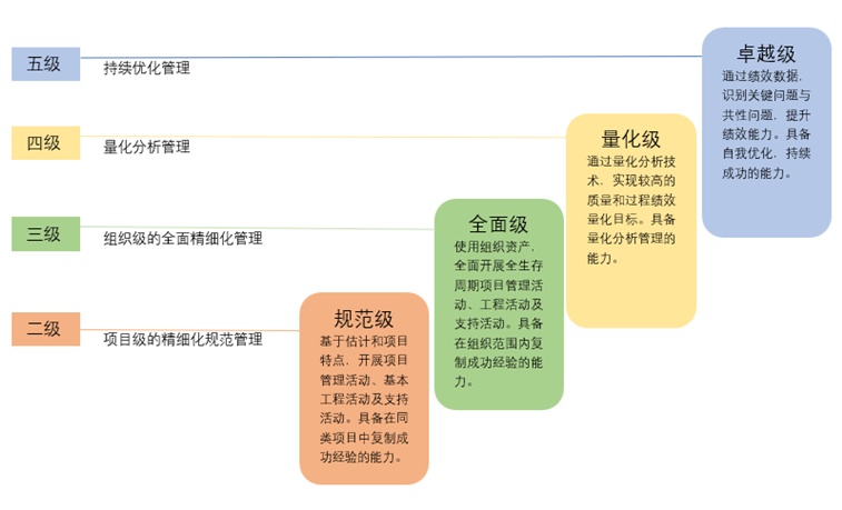 该标准定义了初始级(1级)、规范级(2级)、全面级(3级)、量化级(4级)和卓越级(5级)5个从低到高的成熟度等级,为航天软件工程化提供了一个清晰的进化路径。遵循该标准意味着星载软件研制的组织已经具备了一套完整的管理体系和技术能力,能够保证星载软件的高质量、高安全性和高可靠性。