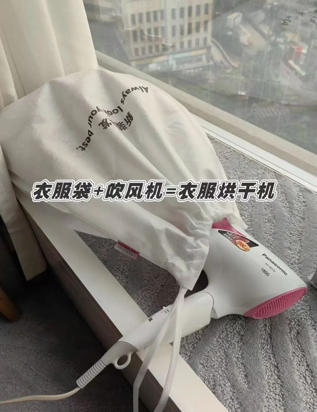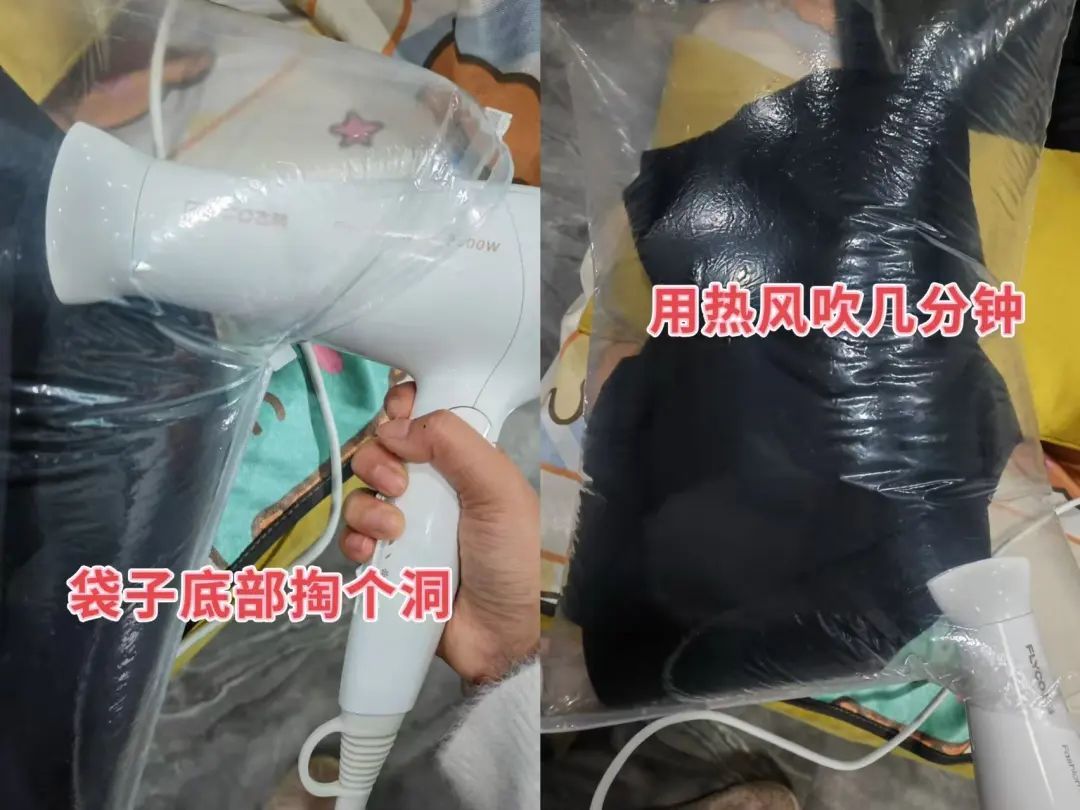 直接用衣服袋+吹风机,把衣服烘干。尤其是在潮湿的季节,更是实用。