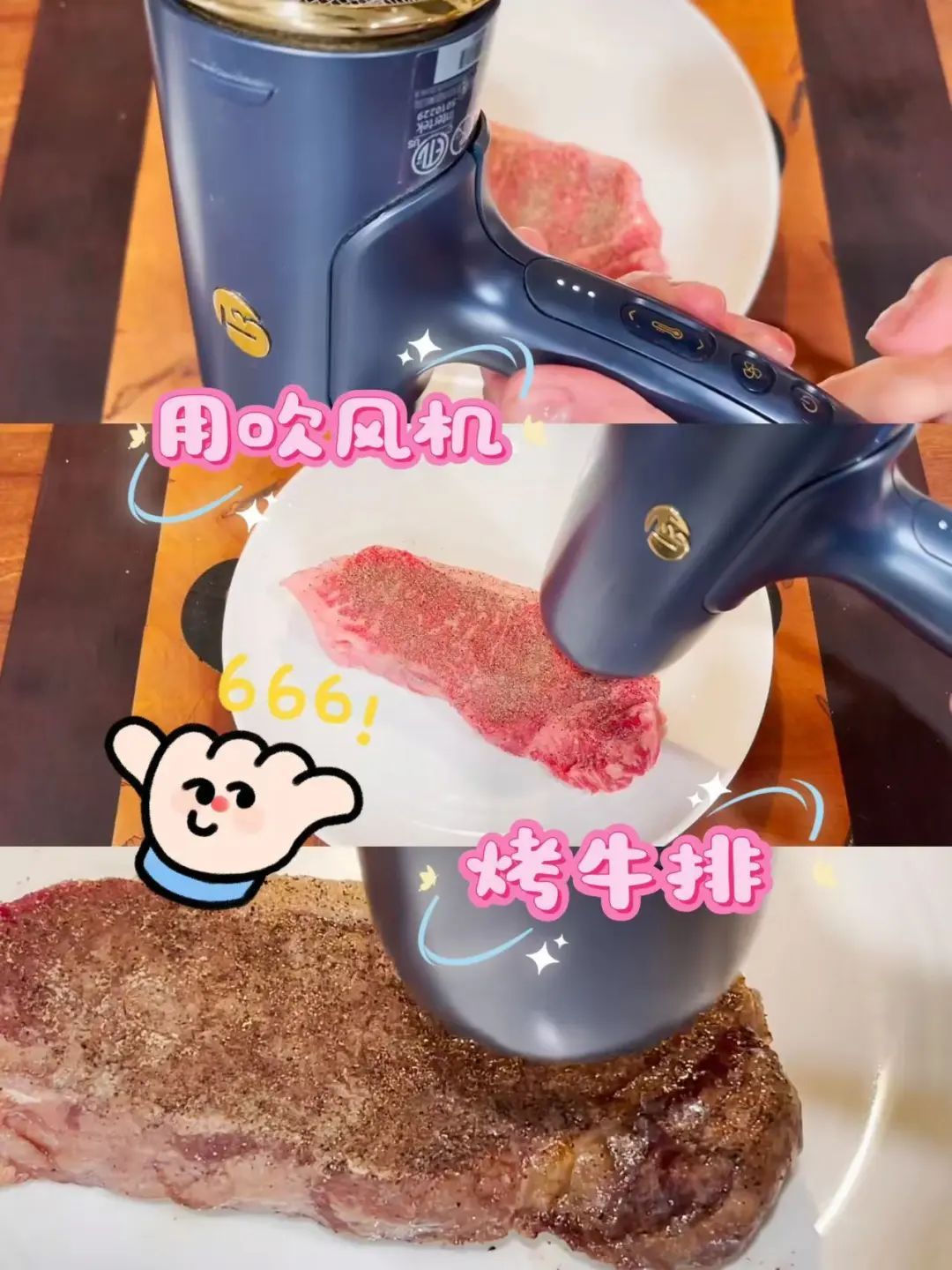 还有人研究出了电吹风烤牛排,你就吃吧,一吃一个不吱声。